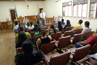 Em reunião com a equipe de servidores da Comarca, assim como fez nas demais unidades por onde passou, ele expôs as metas de sua gestão, agradeceu o apoio concedido à atual Administração do TJAC e pediu empenho para o cumprimento da Meta 2 do Conselho Nacional de Justiça, de julgar, até 31 de dezembro de 2009, todos os processos ingressos na Justiça até 2005.