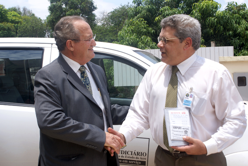 As caminhonetes (marca Toyota, modelo Hilux 4X4 SR turbo intercooler, zero km, ano 2009, cor branca) foram entregues ao Desembargador Arquilau Melo, Coordenador do Projeto Cidadão, e Roberto Romanholo, Diretor de Tecnologia da Informação. Com a entrega desses veículos a atual gestão do TJAC conclui a renovação da frota do Judiciário acreano.