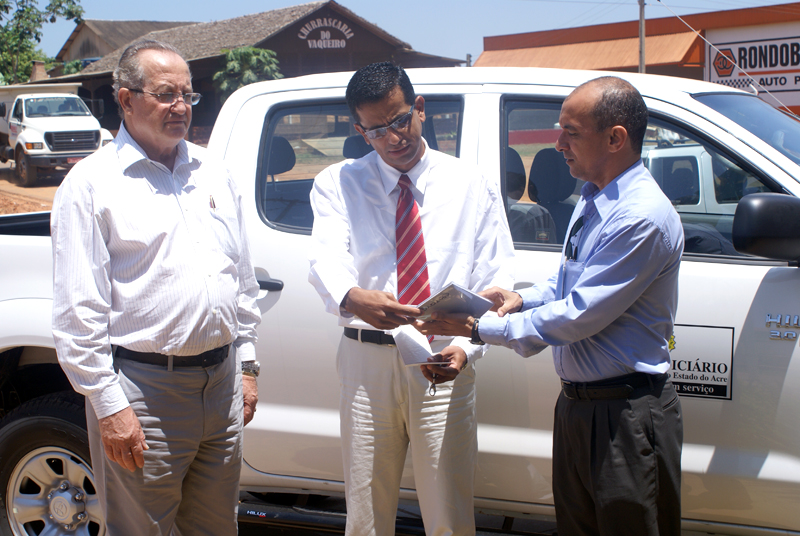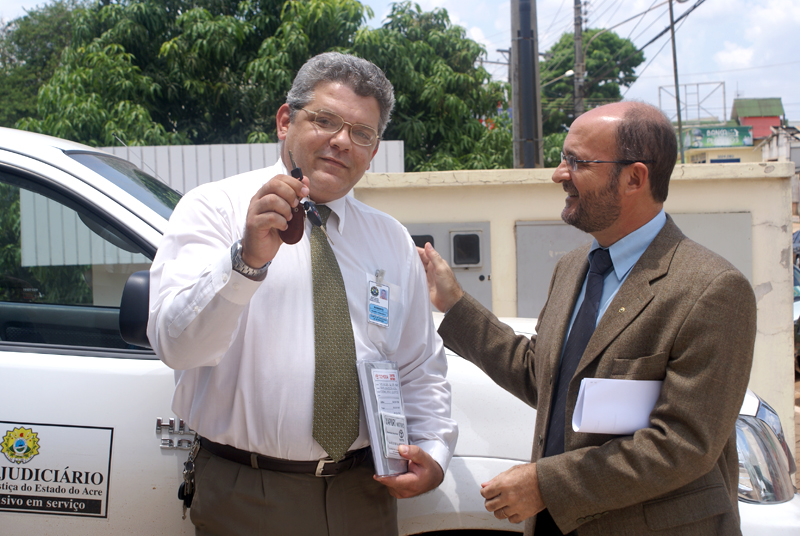 Já no dia 25 deste mês, o Desembargador Pedro Ranzi visitou as Comarcas de Epitaciolândia e Brasiléia, onde entregou aos Juízes Ednaldo Muniz e Joelma Ribeiro duas caminhonetes do mesmo modelo, veículos que auxiliarão nos trabalhos desenvolvidos pelas unidades.