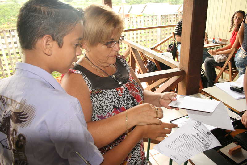 Os moradores do Município de Bujari aproveitaram o atendimento do Projeto Cidadão para concluir o recadastramento eleitoral. Foi o caso da dona de casa Clarisse Marcelina da Silva, 18 anos, que mesmo com uma criança de colo fez questão de comparecer ao local.