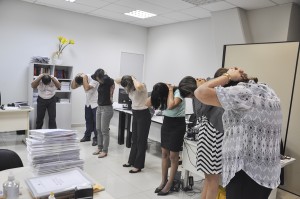 Durante reunião de abertura das atividades, na última segunda-feira (09), com diretores, gerentes, assessores e secretários do Tribunal, a desembargadora-presidente Cezarinete Angelim destacou que “é fundamental a saúde e o bem-estar dos magistrados e servidores”. Ela própria participou dos exercícios e lembrou que “o cuidado com o corpo e com a mente são indispensáveis para enfrentar a rotina de trabalho e a o ritmo acelerado em que vida a sociedade contemporânea”.