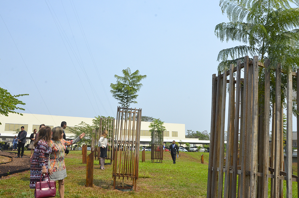 Após o evento de lançamento do Programa “Leis Alimentares”, a desembargadora-presidente convidou os presentes para uma caminhada na trilha do Bosque Florido do edifício sede do TJAC, local onde foram plantadas mudas de árvores como o ipê amarelo e o jacarandá mimoso, como demonstração da preocupação da atual gestão com a causa ambiental.