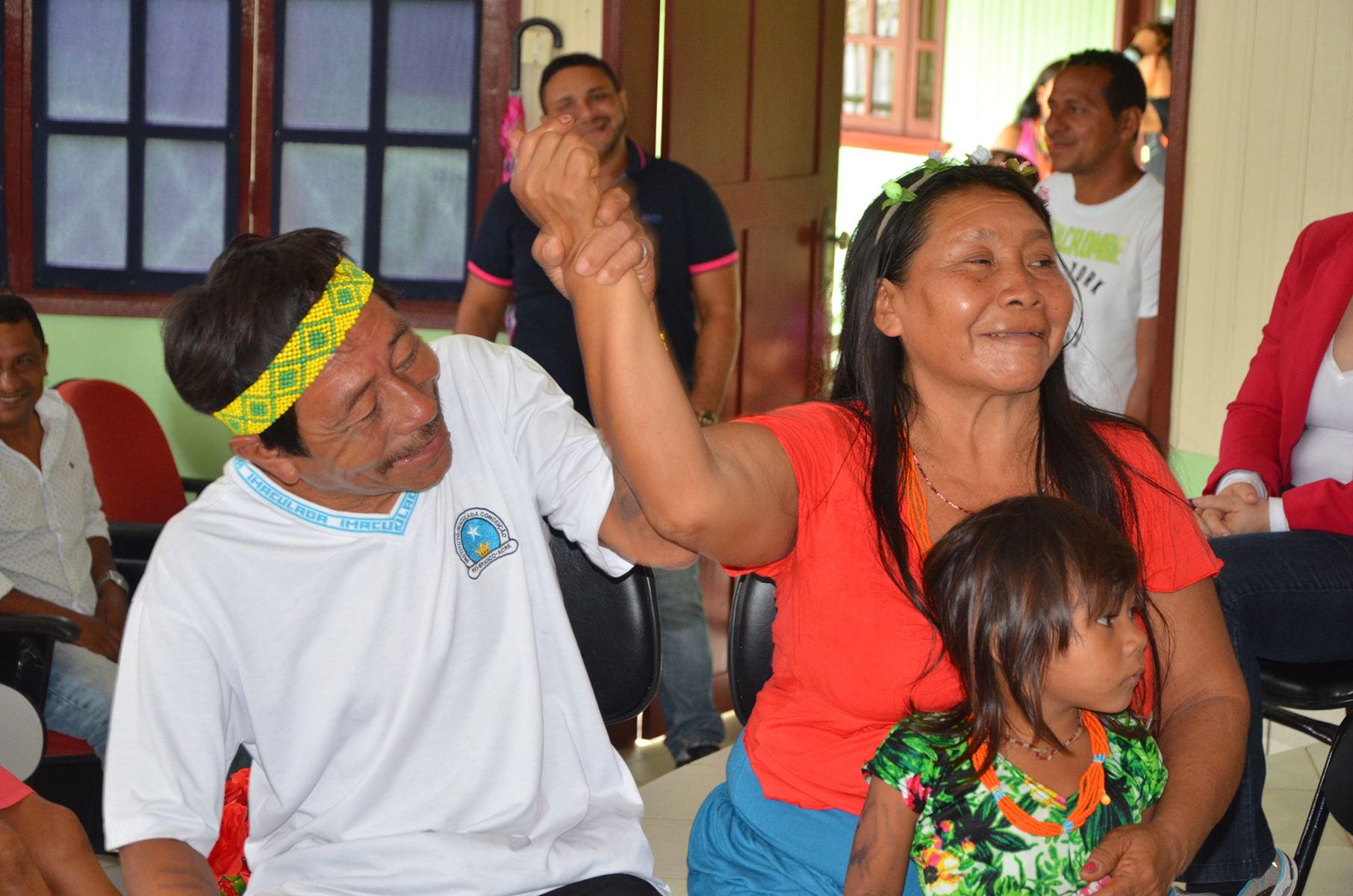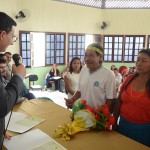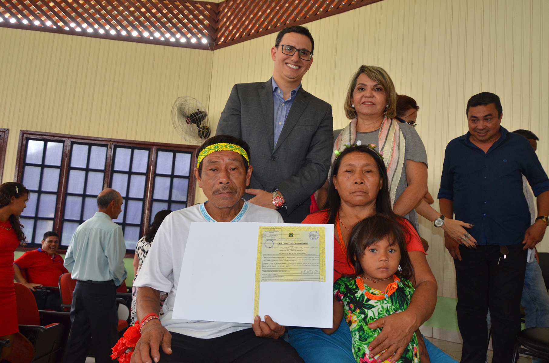 O Antônio Sabino e a Francisca Mila, da etnia kaxinawá, por exemplo, vivem juntos há mais de três décadas. Da união resultaram sete filhos e já começam a surgir os primeiros netos, como a pequena que dormia no colo da avó durante a cerimônia. Ele, com 59 anos e ela, com 53 anos, formam o casal mais velho da edição do Casamento Coletivo. Tímidos, eles se restringiram em balançar a cabeça em sinal positivo, quando perguntados se estavam felizes em oficializar a união,