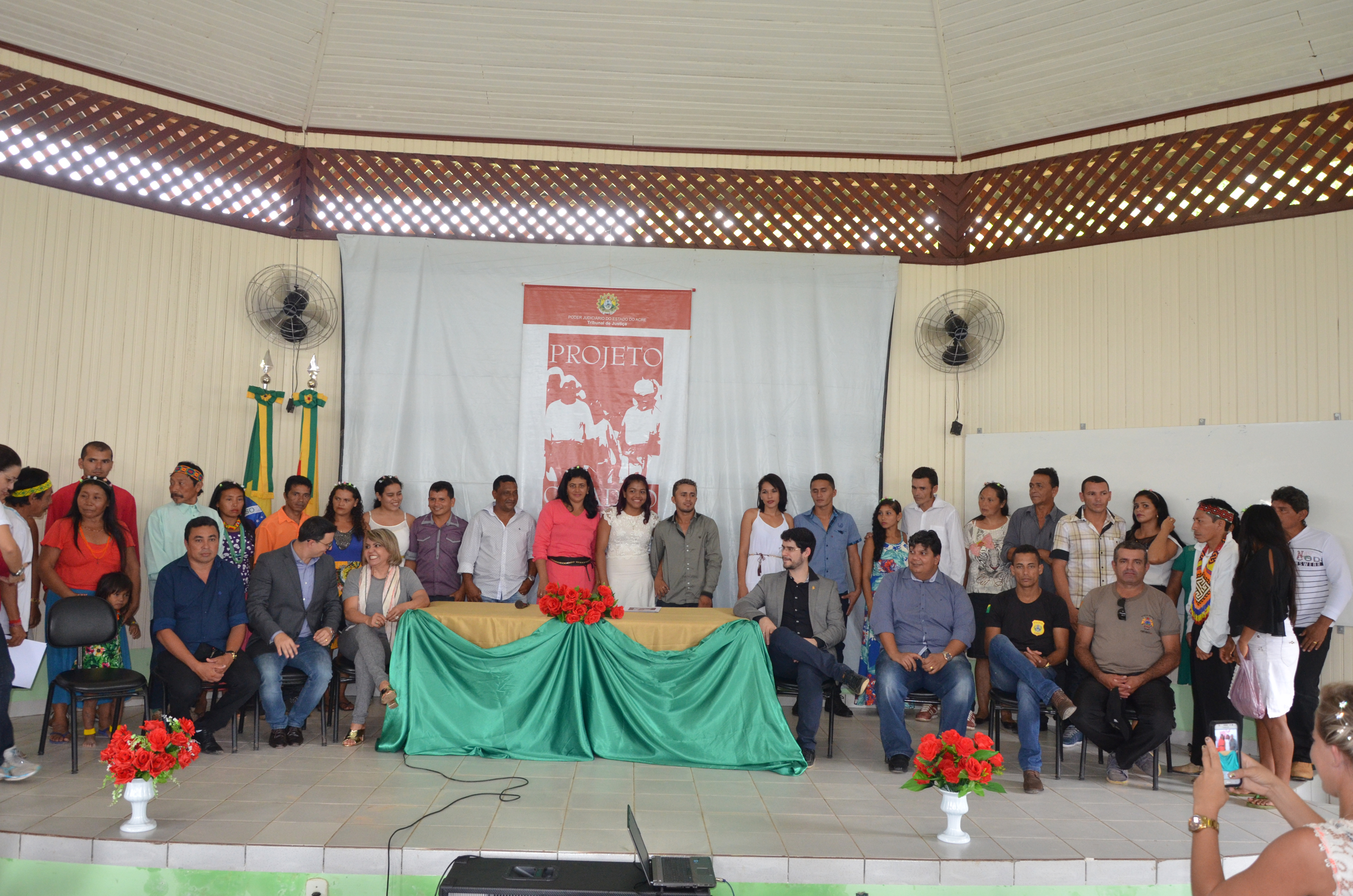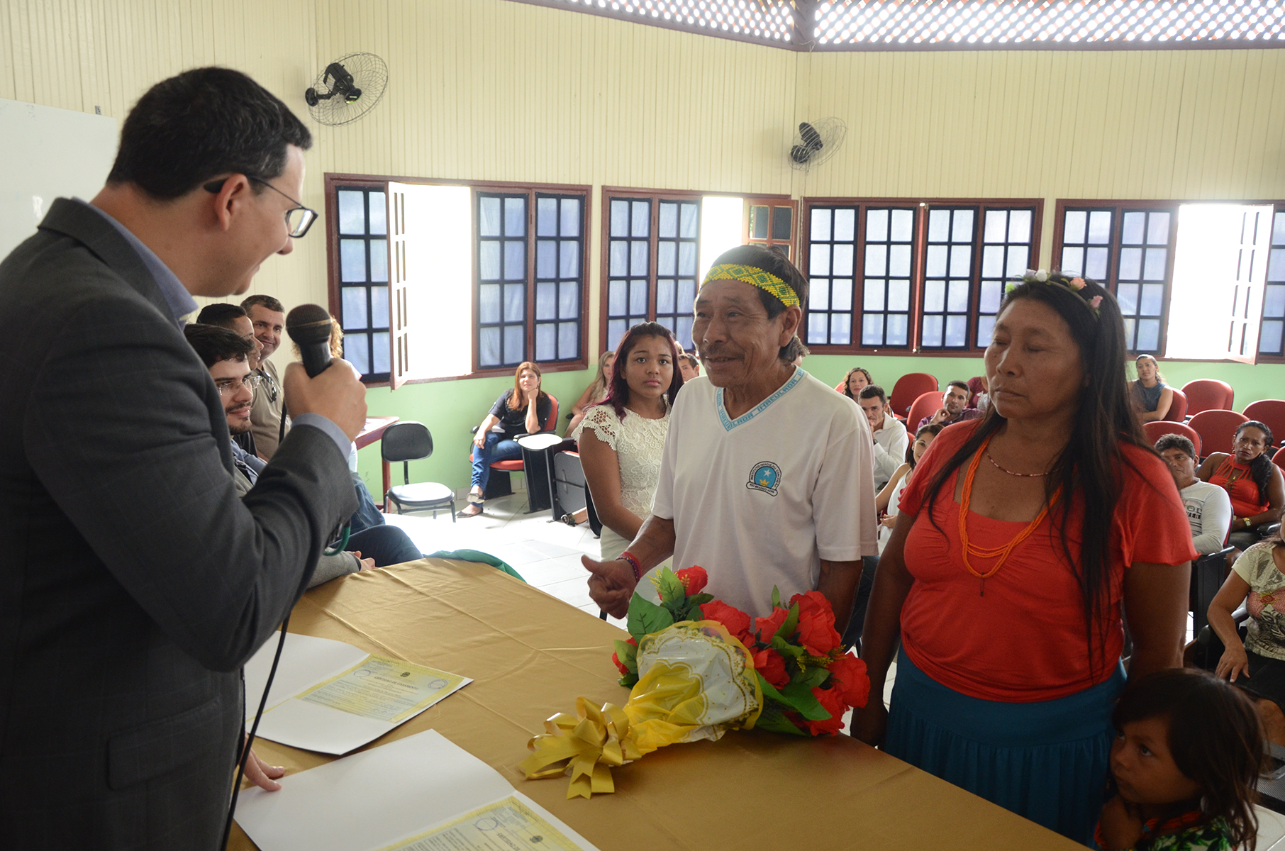 O local escolhido para a cerimônia foi o Centro de Florestania do município, cuja arquitetura erguida em madeira, ressalta as riquezas naturais da região. Bastante ambientadas com o local, crianças indígenas e não indígenas circulavam exibindo trajes especiais para comemorar a união civil de seus pais, em sua maioria, já unidos de fato há muitos anos.