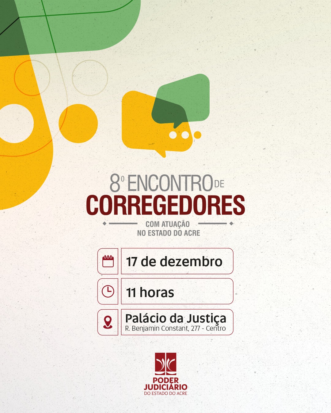 Nesta terça-feira, 17, acontece o 8º Encontro de Corregedores com atuação no Estado do Acre, às 11h, no Palácio da Justiça, no centro de Rio Branco. O evento reúne os órgãos de fiscalização e correições de diversas instituições com objetivo de melhorar os trabalhos realizados.
