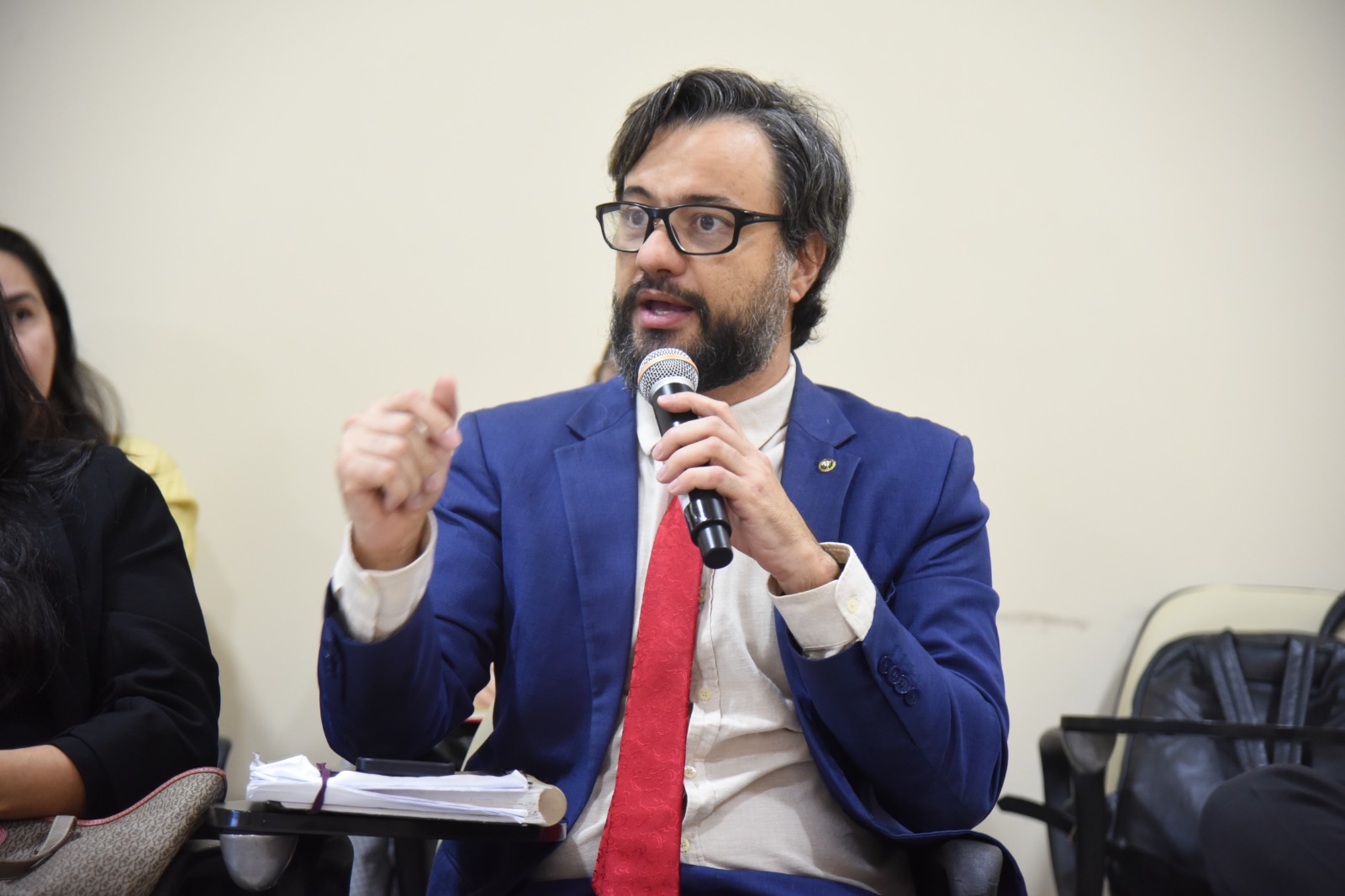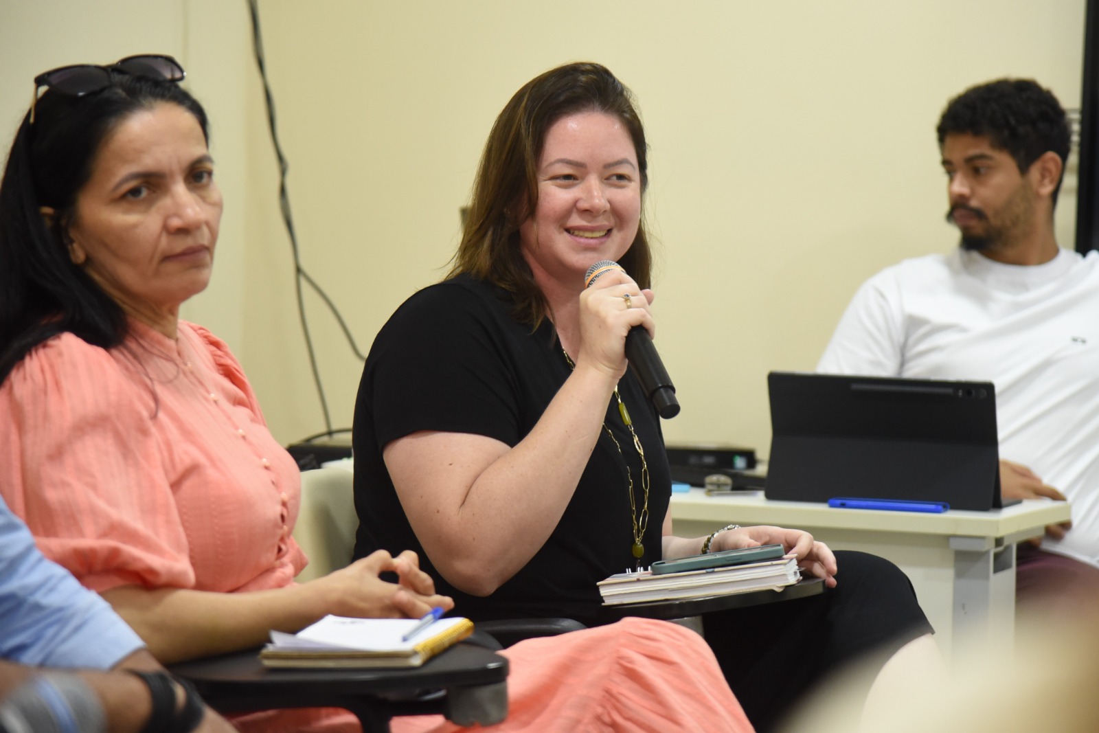 O debate, realizado na Escola do Poder Judiciário do Acre (Esjud), contou com a participação das juízas de Direito Andréa Brito e Gláucia Gomes, do juiz Hugo Torquato, além de representantes do Ministério Público e Defensoria Pública Estadual, do Instituto de Administração Penitenciária do Acre (Iapen/AC) e do Escritório Social.