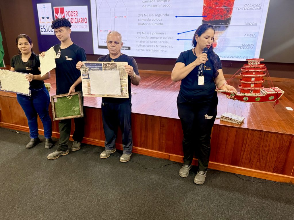 Sensibilizar e orientar colaboradoras e colaboradores terceirizados do Tribunal de Justiça (TJAC) sobre a importância da correta separação e destinação dos resíduos sólidos. Com essa proposta, a Escola do Poder Judiciário do Acre (Esjud) realizou nessa quinta-feira, 10, a palestra “Da Coleta ao Descarte: Como Garantir a Sustentabilidade na Prática”. Dessa forma, o Órgão de Ensino contribui para preservação do meio ambiente, ao bem-estar social e à boa governança institucional.