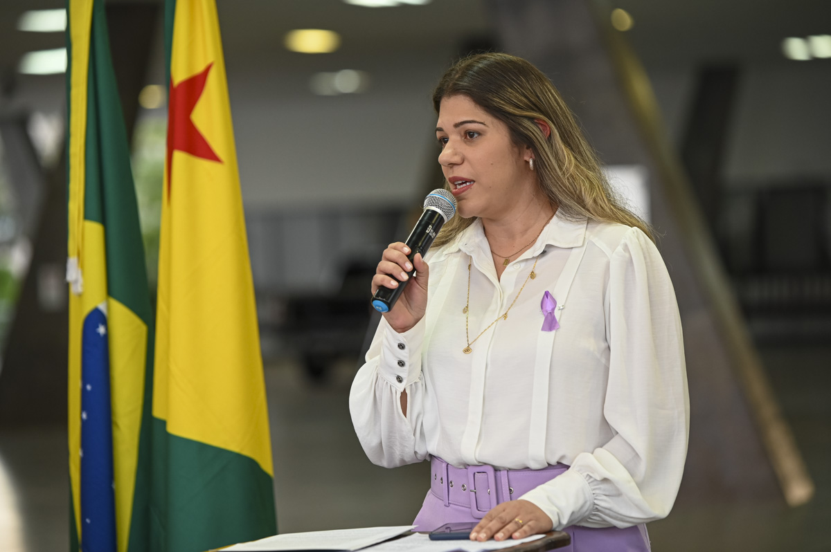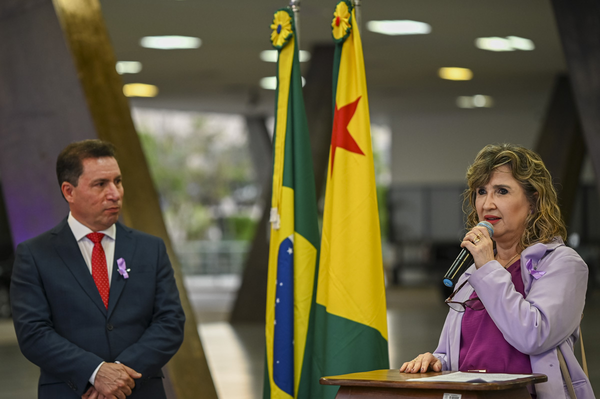 A procuradora de Justiça Rita de Cássia afirmou ser uma honra, como mulher, representar o Ministério Público. Segundo ela, o MP tem atuado incansavelmente para acolher, proteger as vítimas e responsabilizar os agressores. “Aqui nós reafirmamos nosso compromisso coletivo de fazer do Acre um lugar onde as mulheres possam viver de forma digna e sem violência”, declarou. Ela também destacou que o machismo estrutural ainda é dominante na sociedade e reforçou a importância de campanhas de conscientização.