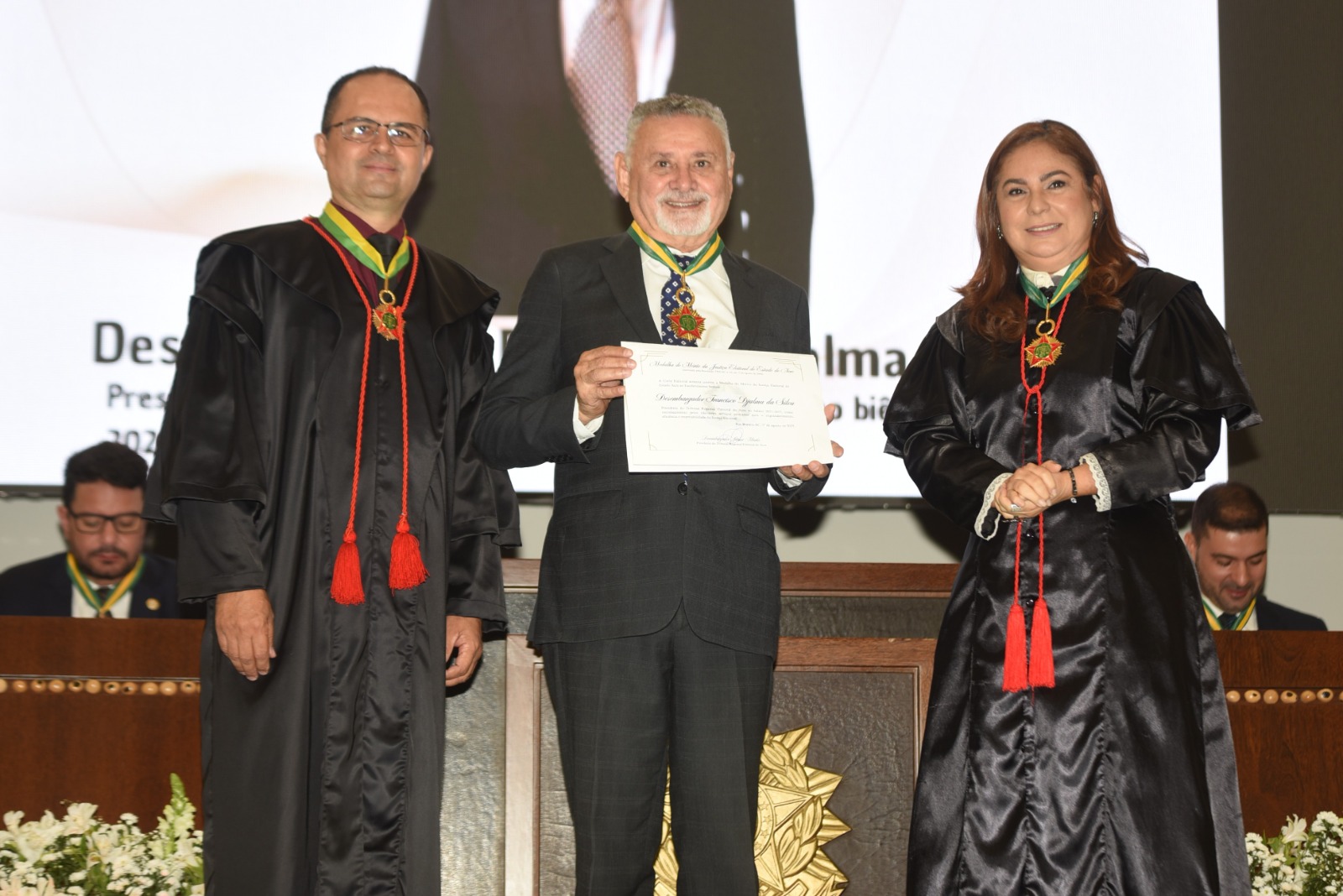 Além disso, o corregedor-geral da Justiça do Acre, Nonato Maia, junto aos desembargadores Samoel Evangelista, Roberto Barros, Denise Bonfim, Francisco Djalma, Luís Camolez e Lois Arruda participaram do ato, assim como, juízas e juízes de Direito e autoridades de todos os poderes.