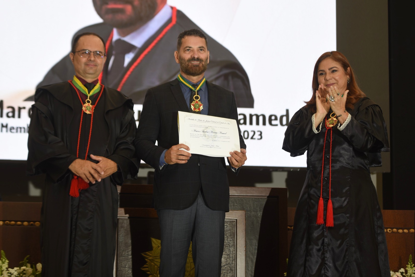 Para celebrar este Jubileu, foram entregues medalhas do Mérito da Justiça Eleitoral às pessoas que contribuem com o trabalho da instituição e com a promoção da democracia. Entre as homenageadas e homenageados estavam integrantes da magistratura: desembargador Francisco Djalma (presidente do TRE, no biênio 2021 a 2023), Maha Manasfi (juíza eleitoral no biênio 2021 a 2023), Marcos Tadeu (juiz eleitoral no biênio 2021 a 2023) e Fernando Nóbrega (juiz eleitoral no biênio 2023 a 2025).