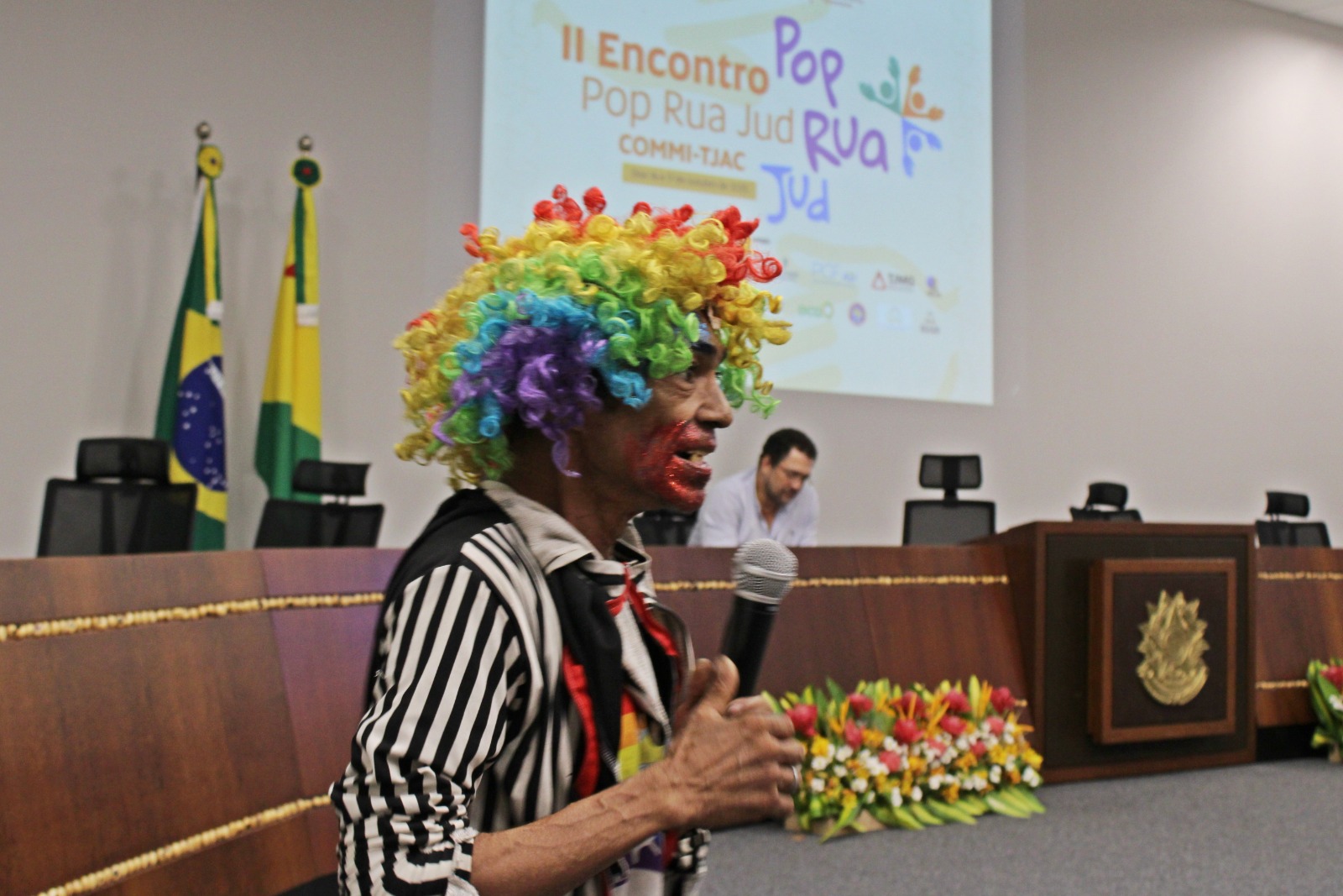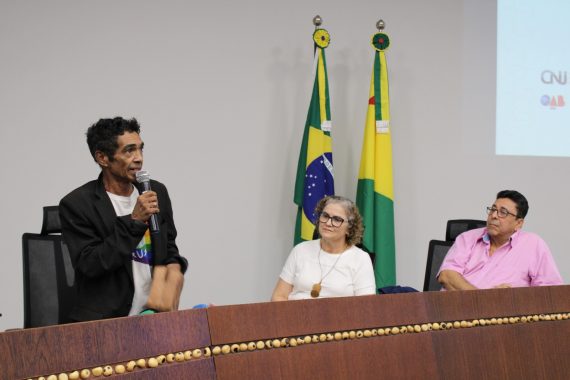 Depois, o representante do Movimento Acreano das Pessoas em Situação de Rua (MAPSIR), Hudson Nunes, relatou sobre sua trajetória nas ruas e das dificuldades de se conseguir acesso às políticas públicas. “Continuamos sofrendo preconceito de todas as espécies: da polícia, do poder público, do [Plano] Ruas Visíveis que não acontece, da saúde que nos nega atendimento, da educação que nos é negada”, desabafou.