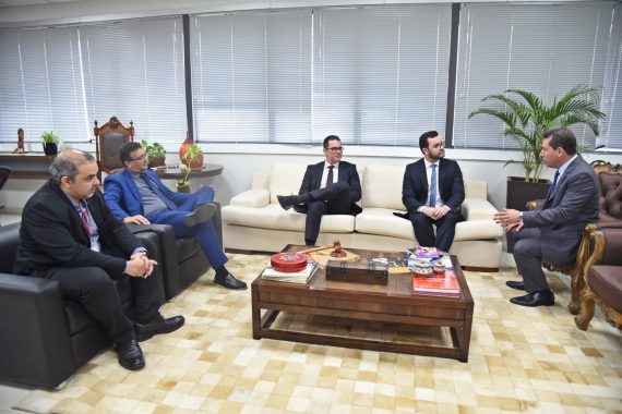 O presidente do Tribunal de Justiça do Acre (TJAC), desembargador Laudivon Nogueira, recebeu, nesta terça-feira, 28, os advogados Hiago Moura e Gilliard Rocha, representantes da Energisa. O diálogo foi acompanhado pelo secretário-geral (Seger), José Carlos Martins Júnior e o assessor-chefe Jurídico Marcel Viana.