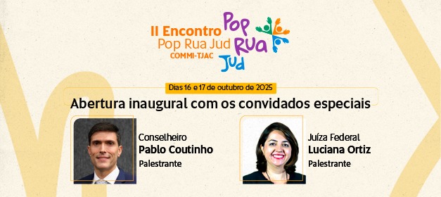 Entre os palestrantes confirmados estão nomes de destaque nacional no âmbito da Justiça e das políticas públicas para pessoas em situação de rua. O conselheiro Pablo Coutinho, coordenador da Política Pop Rua Jud no Conselho Nacional de Justiça (CNJ), fará a aula magna com o tema “Justiça Emancipatória e liberdades substantivas: Desafios e Oportunidades para a Construção de uma Sociedade mais Justa”. Logo depois, a juíza federal Luciana Ortiz, secretária executiva do Comitê Nacional Pop Rua Jud do CNJ, tratará sobre o Manual Orientativo: formas de atuação do Poder Judiciário na perspectiva da atuação em rede.