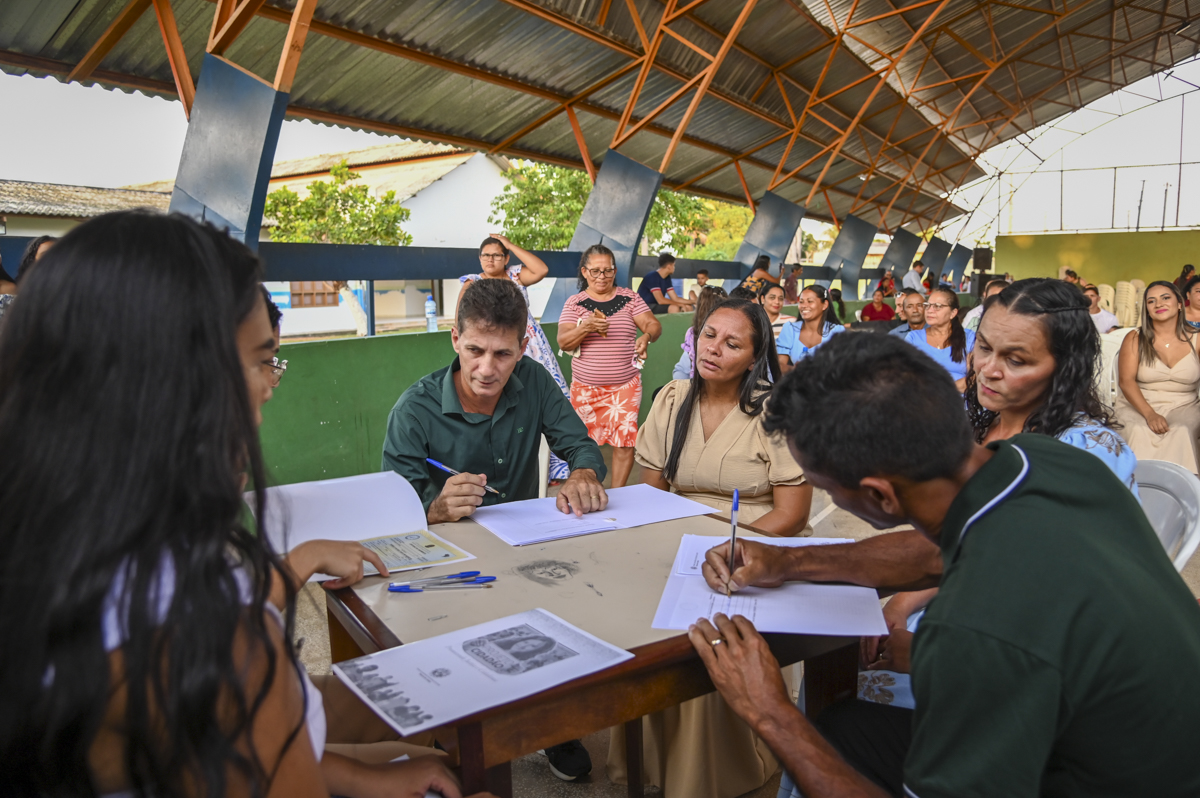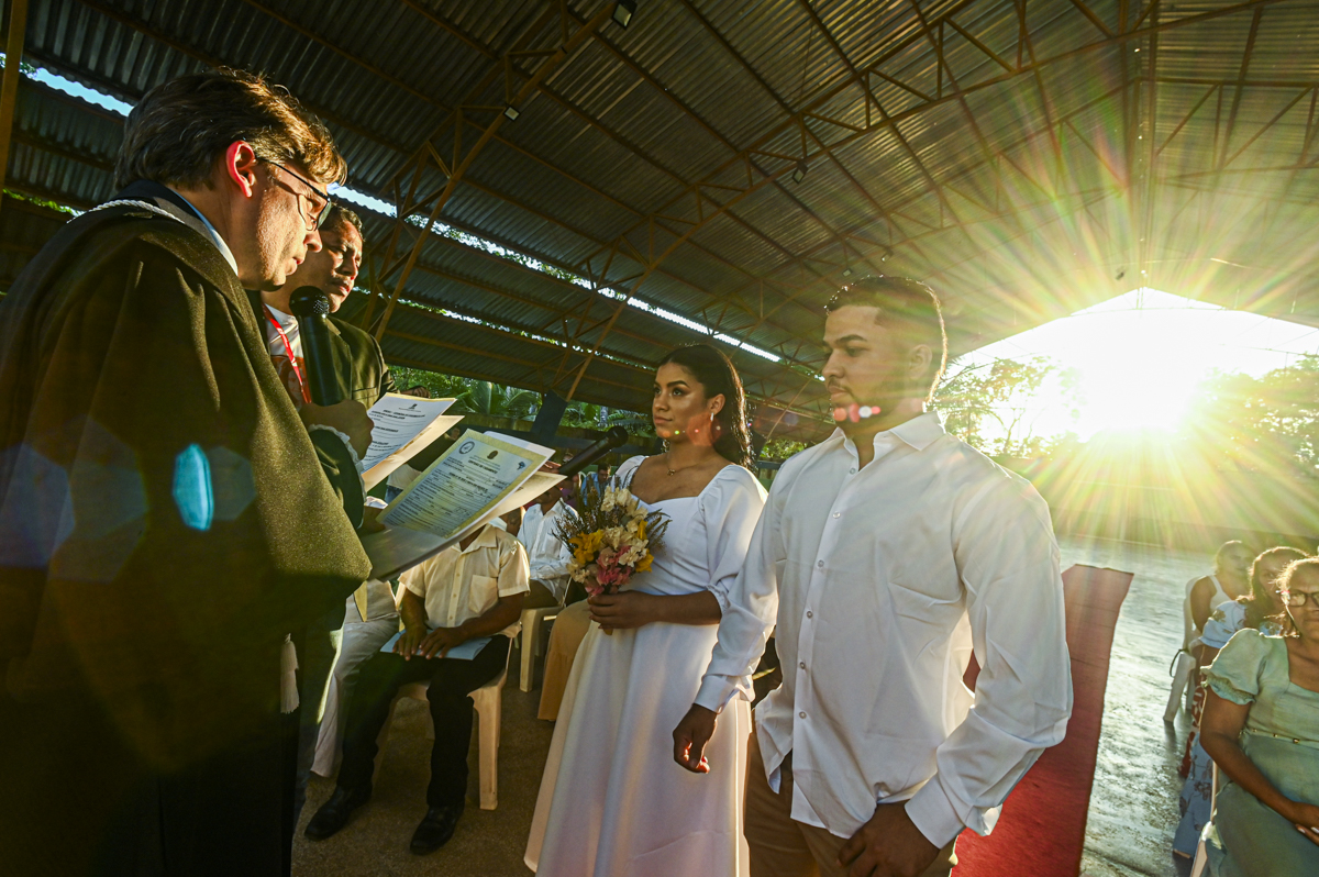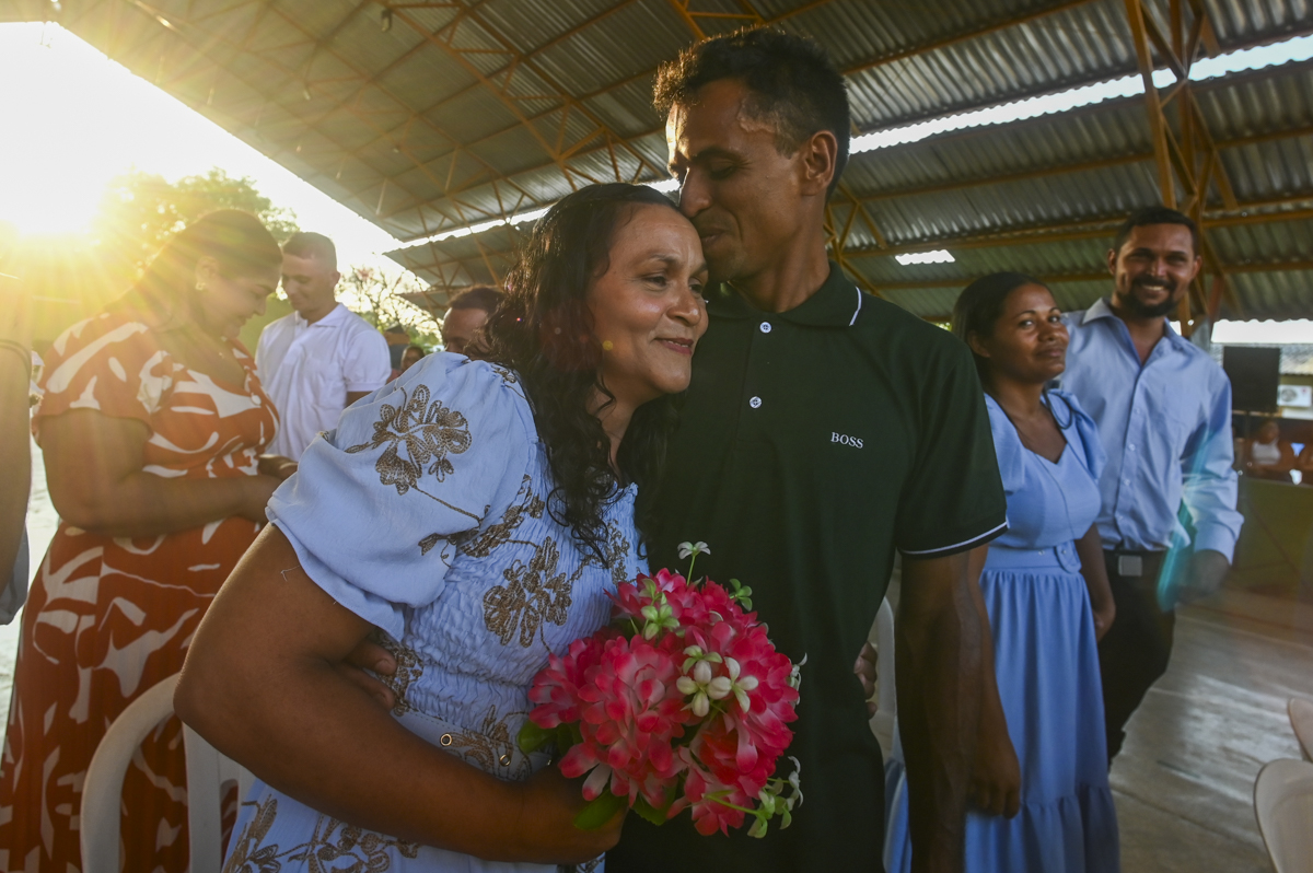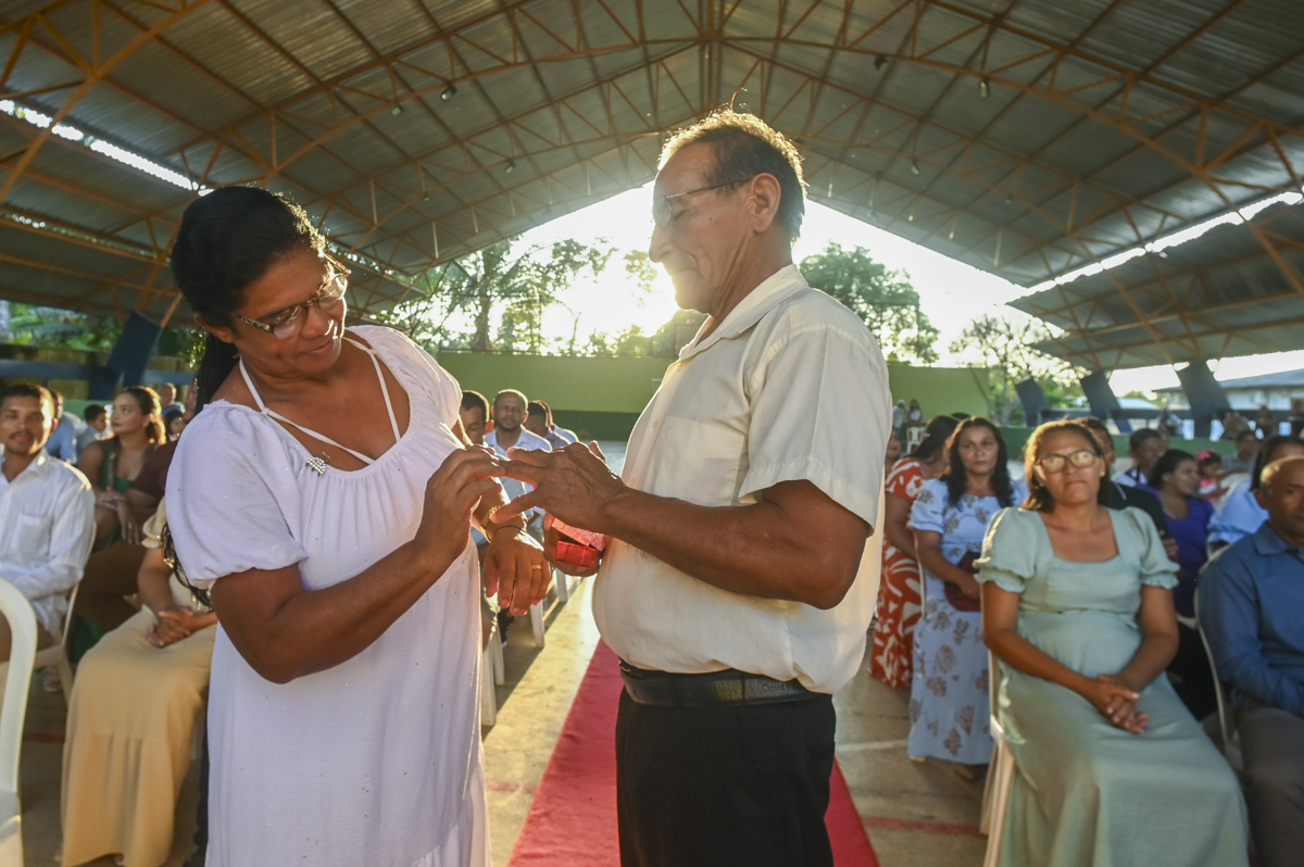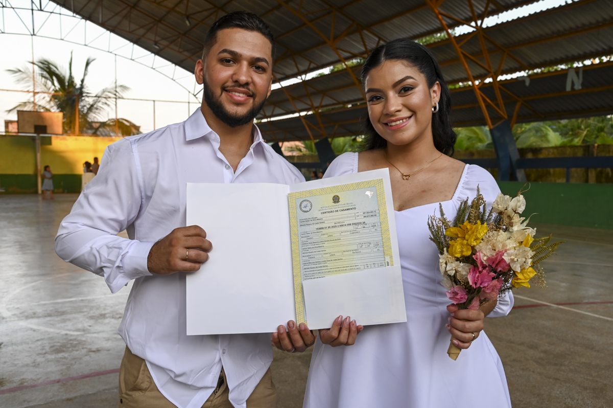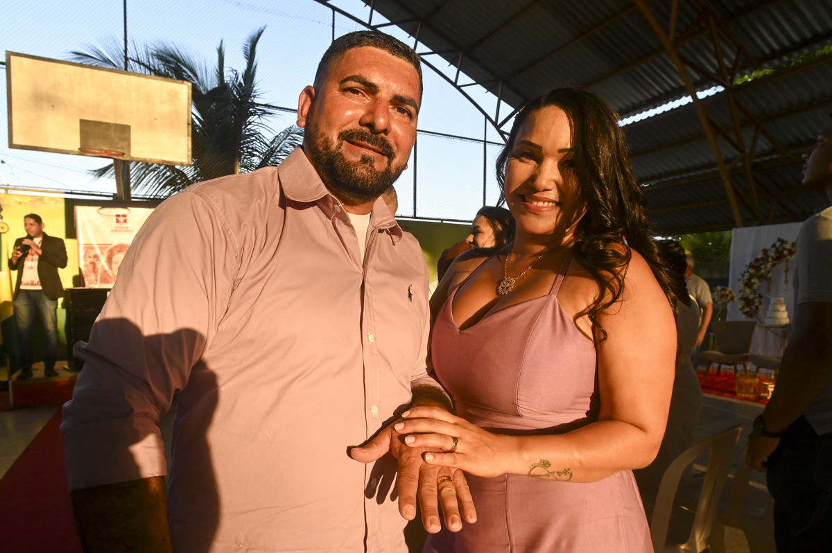 Outro destaque do dia foi a oficialização da união de 40 pessoas, com apoio do cartório extrajudicial da cidade. Uma oportunidade de garantir direitos e consolidar uniões, como caso de Leudiane Rodrigues da Silva, 41 anos, e Francisco José Maciel da Silva, também 41 anos, que estão juntos há 13 anos, tem seis filhos. Eles chegaram duas horas antes da cerimônia na quadra da escola de tão ansiosos e nervosos que estavam, “a gente não queria perder a chance”, completou Francisco.