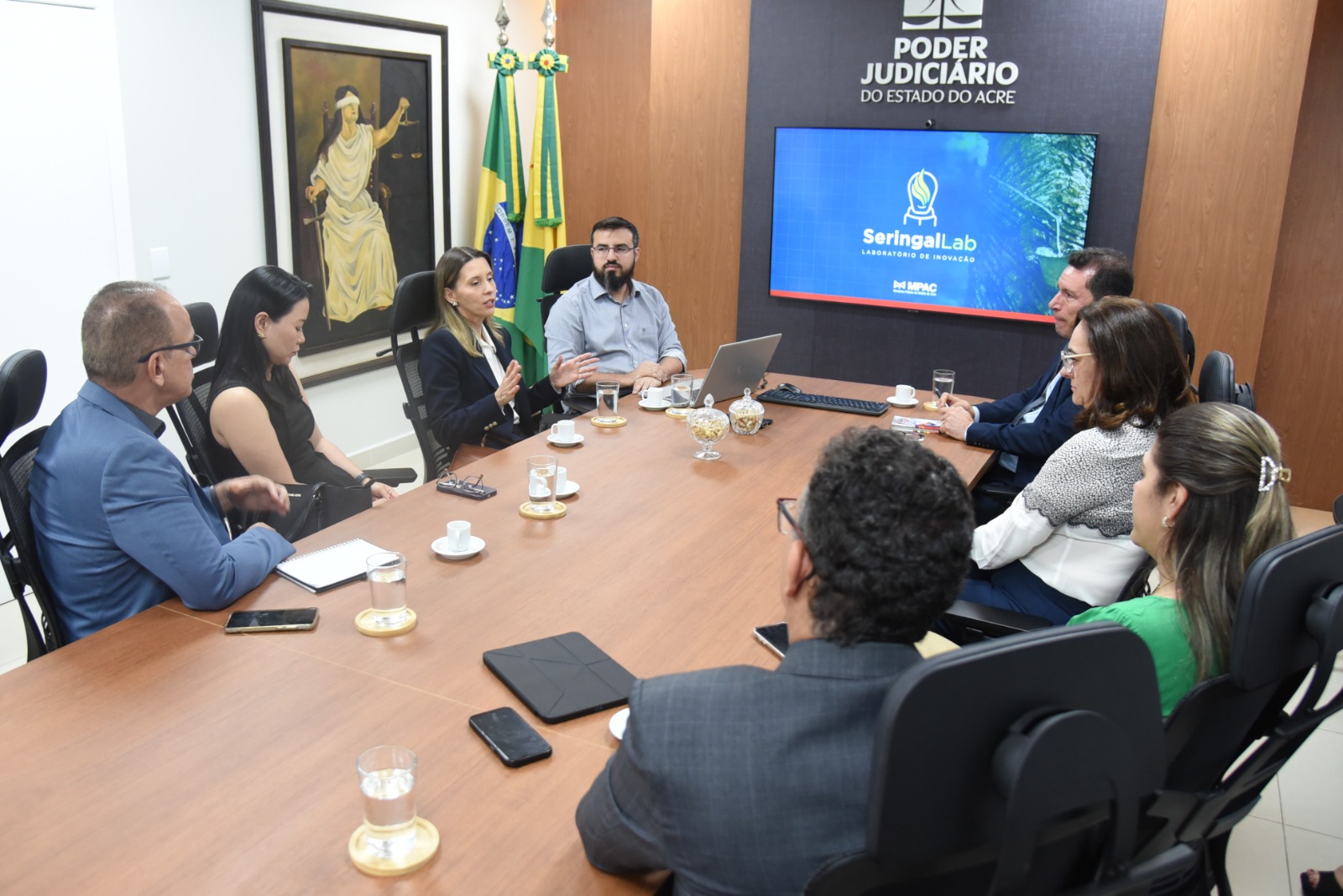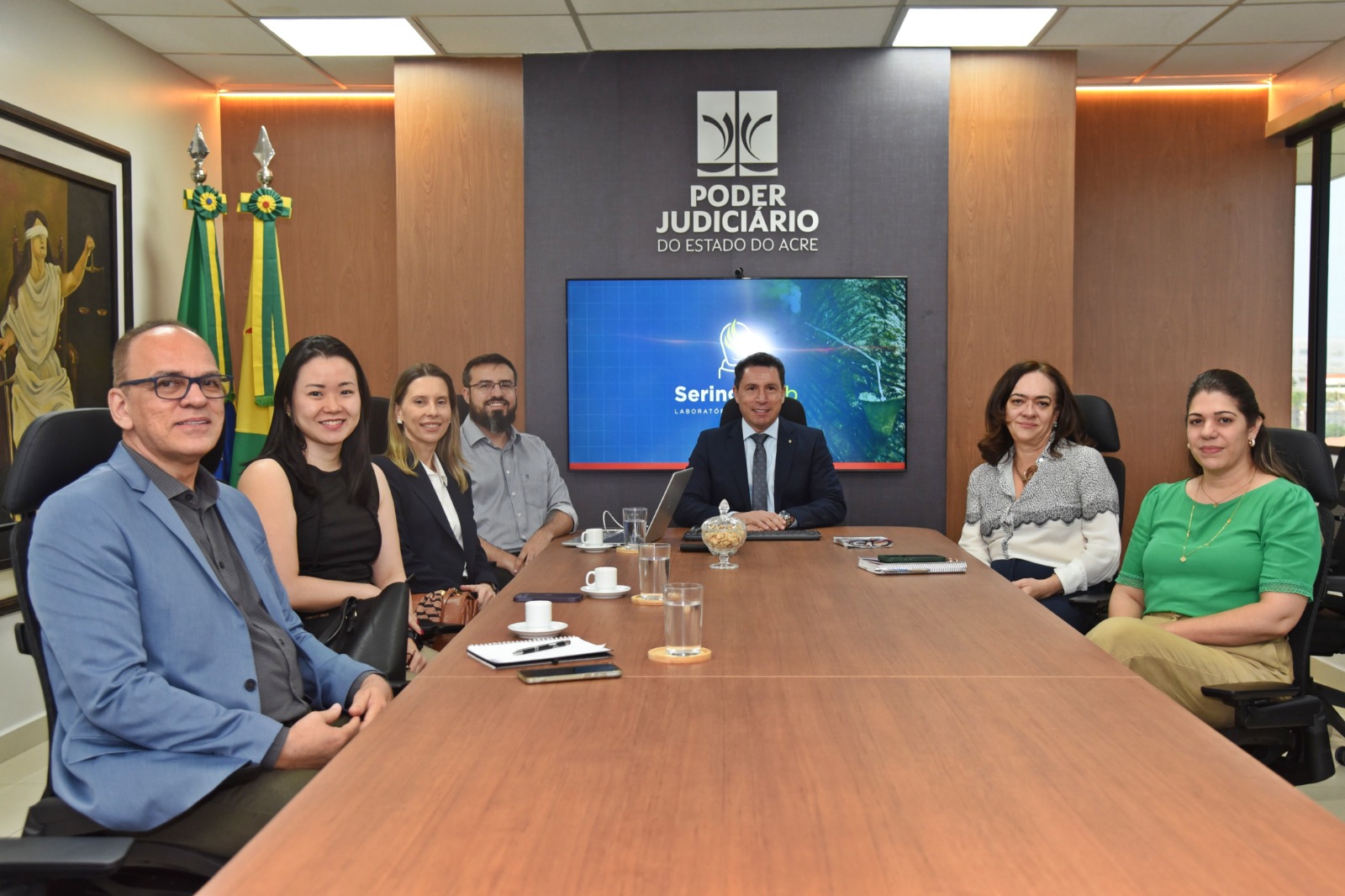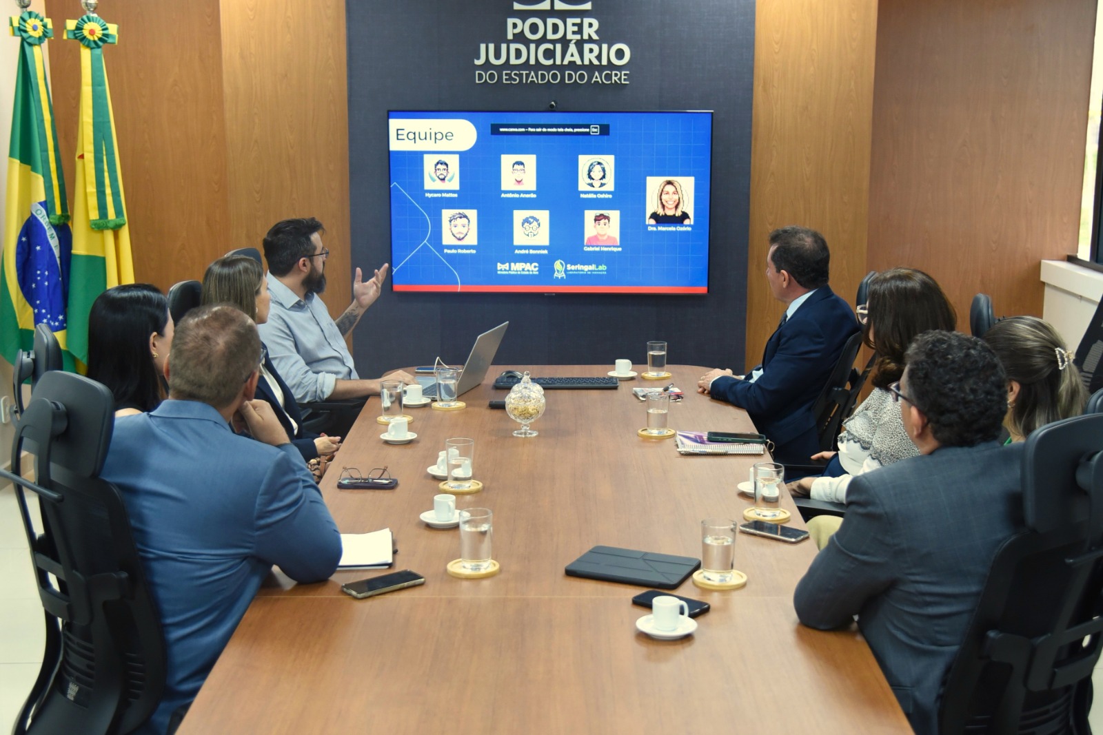 Durante o encontro, também participaram juízes auxiliares da Presidência, além de representantes da Secretaria de Gestão Estratégica (Seger) e da Secretaria de Governo (Segov) do TJAC, que acompanharam a demonstração das iniciativas apresentadas.