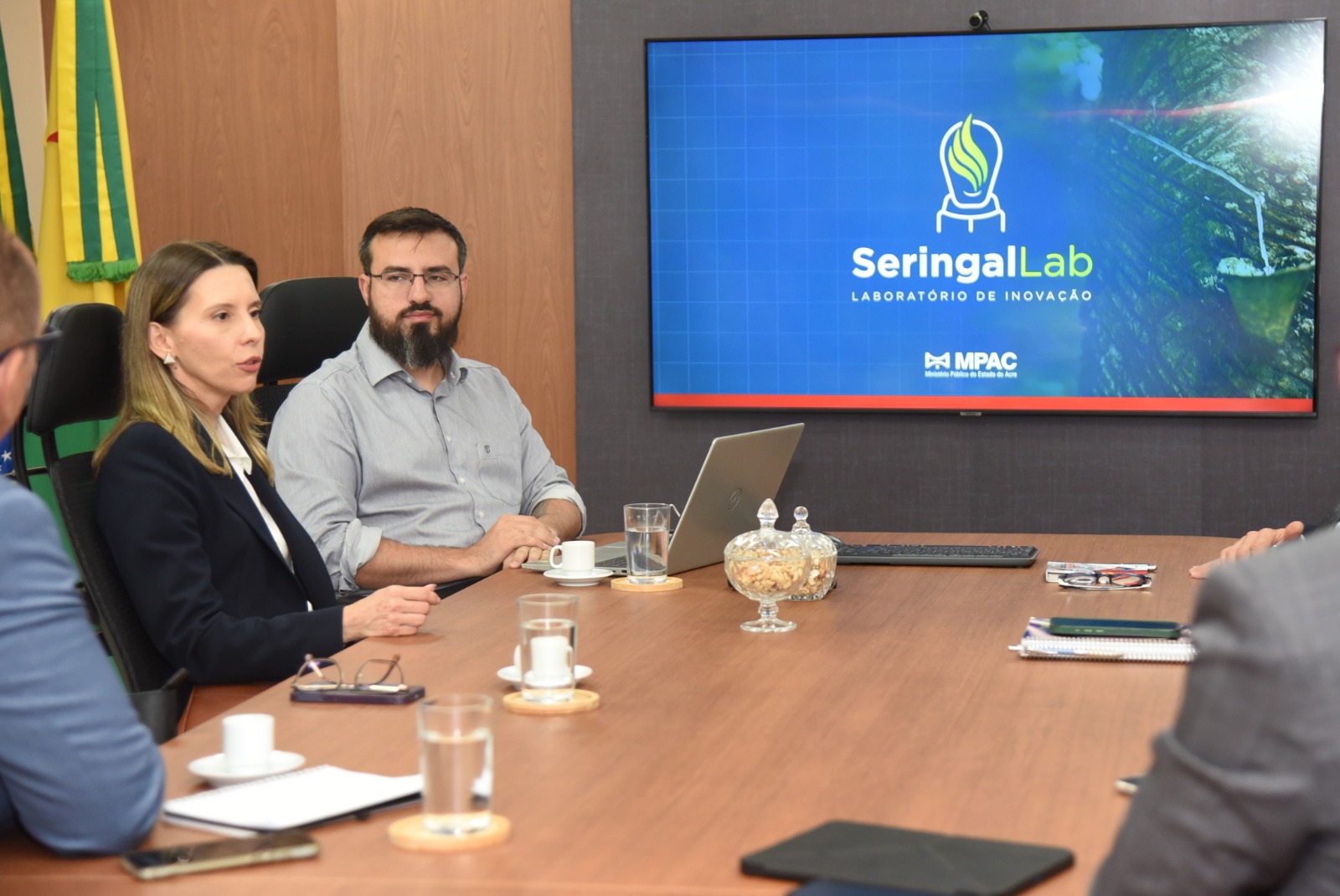A apresentação foi conduzida pela promotora de Justiça Marcela Cristina Ozório, representante do MPAC, que destacou o papel do SeringalLab na criação de soluções colaborativas e estratégicas para aprimorar a atuação do Ministério Público.