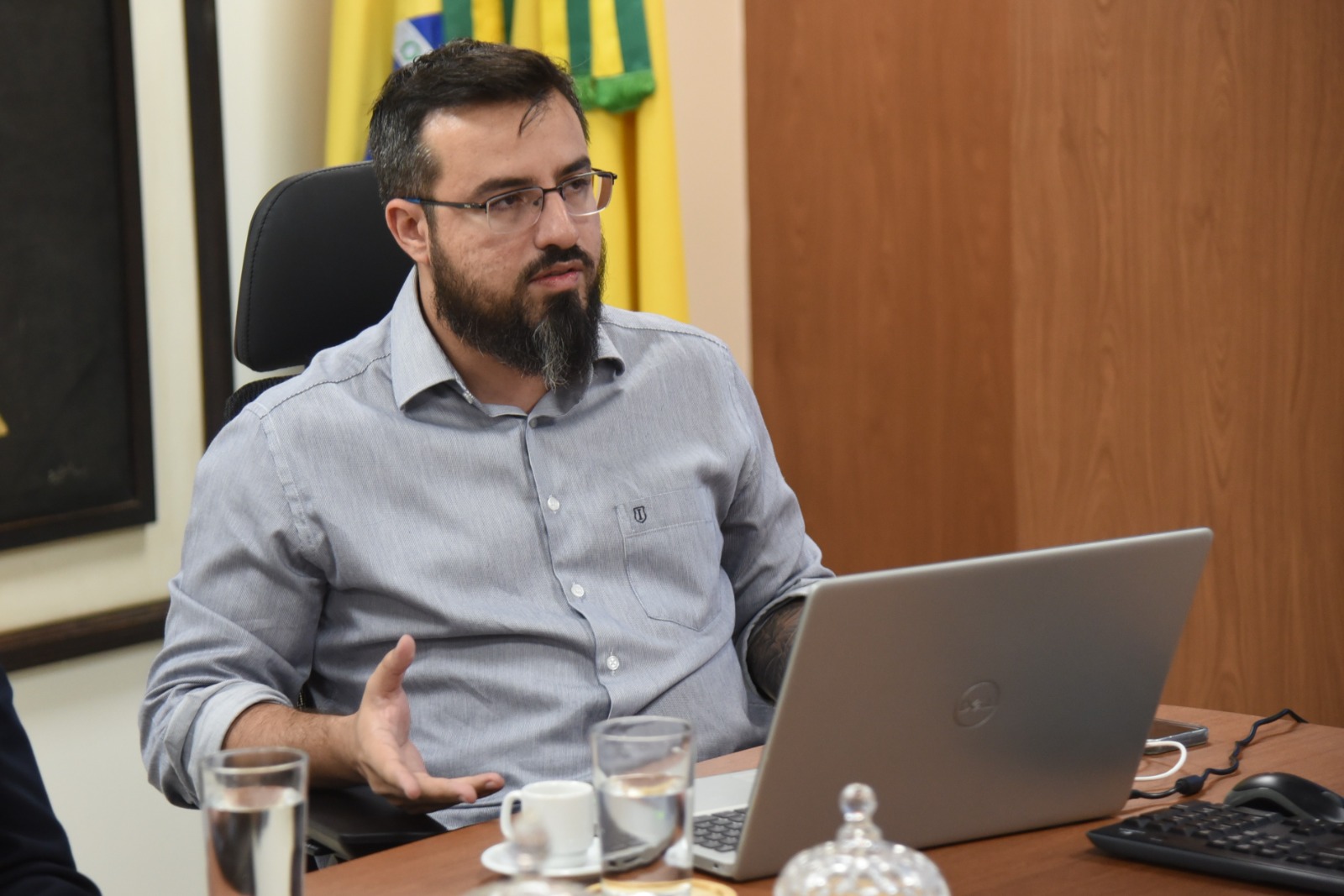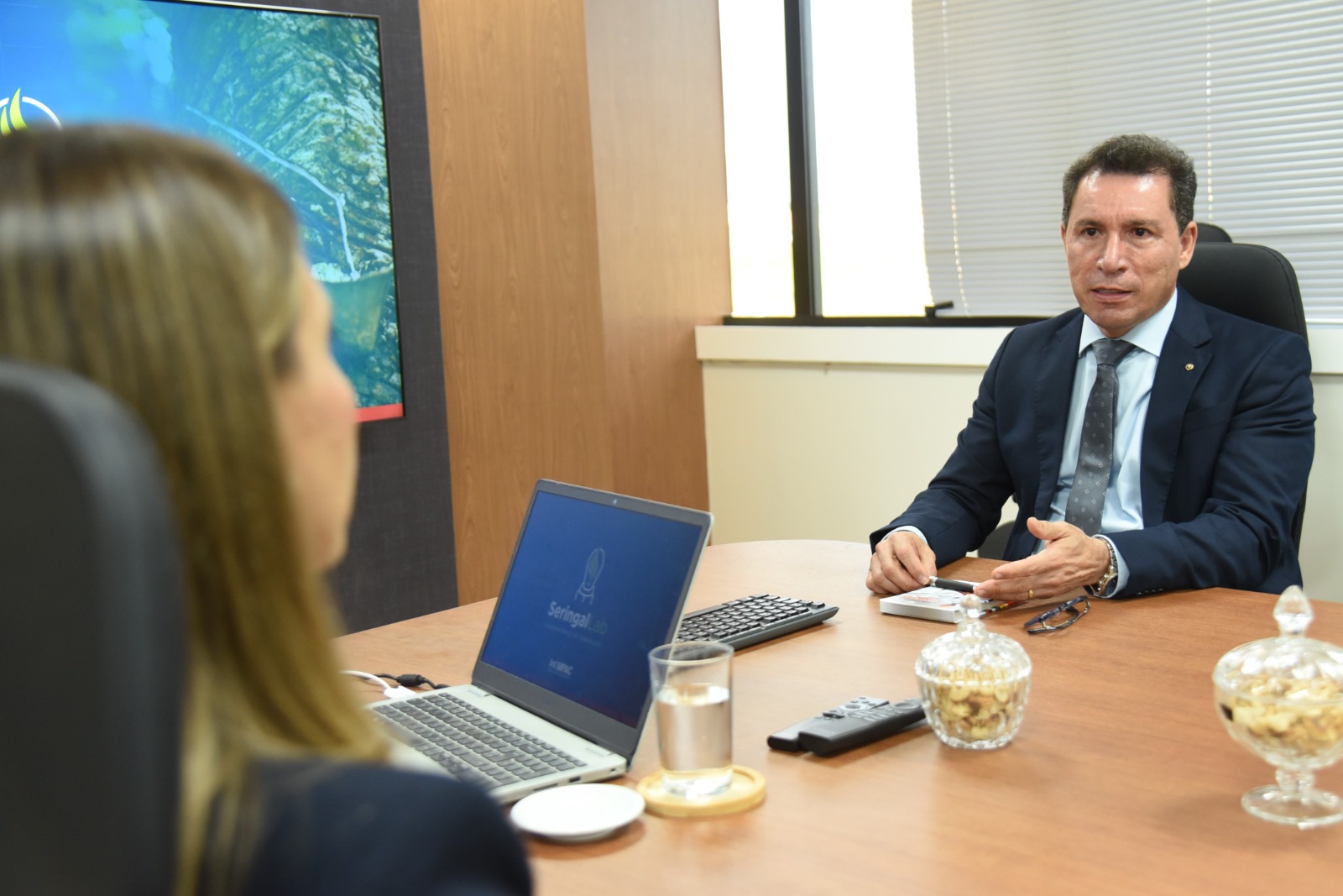 O presidente do Tribunal de Justiça do Acre (TJAC), desembargador Laudivon Nogueira, recebeu na tarde desta quarta-feira, 22, na sede do tribunal, representante do Ministério Público do Estado do Acre (MPAC) para uma reunião voltada à apresentação do Laboratório de Inovação do MPAC, o SeringalLab, e de seus projetos voltados à transformação digital, incluindo o desenvolvimento de uma inteligência artificial própria, batizada de Anton.IA.
