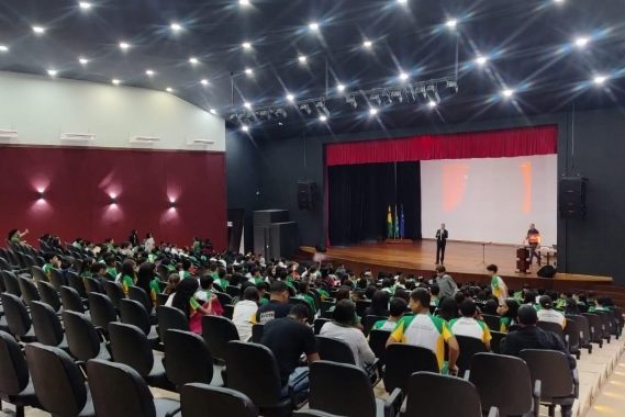 Um dos momentos mais marcantes do projeto foi o evento realizado no Teatro dos Nauas, que reuniu estudantes de quatro escolas em um grande encontro educativo. O espaço ficou lotado, demonstrando o interesse e o engajamento da comunidade escolar no tema.