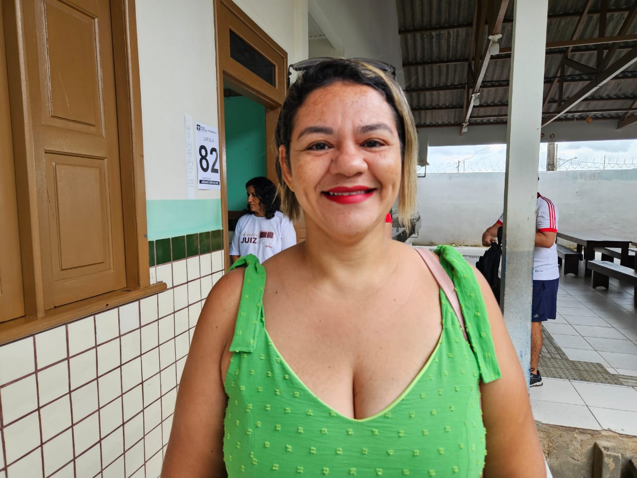 Moradora do bairro Cadeia Velha, no centro de Rio Branco, ela se deslocou até a Escola Natalino da Silveira Brito, no bairro Estação Experimental, para participar da escolha do juiz ou juíza de paz.