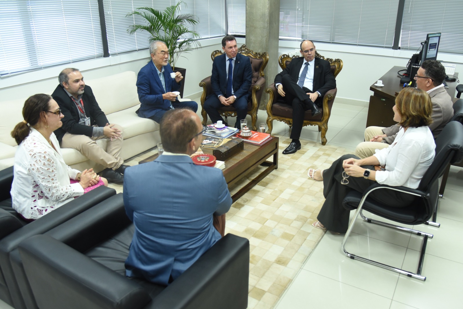 O presidente do Tribunal de Justiça do Acre (TJAC), desembargador Laudivon Nogueira, recebeu, nesta segunda-feira, 3,  o fundador e CEO da Amana-Key, Oscar Motomura,  especialista em gestão avançada. Acompanharam o a conversa a juíza auxiliar da presidência Zenice Mota, o juiz auxiliar Giordane Dourado, Secretário-geral José Carlos Martins Júnior, secretário de Governança e Gestão Estratégica (SEGOV) Hélio Oliveira de Carvalho, secretária de Comunicação Social (SECOM) Andréa Zílio, chefe de Gabinete da presidência Ana Lúcia Felisberto, o assessor-chefe Jurídico da Presidência (ASJUR) Marcel Viana e a chefe de Gabinete Larissa Santos.