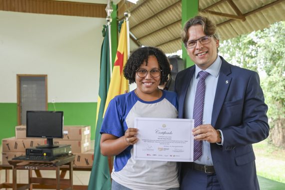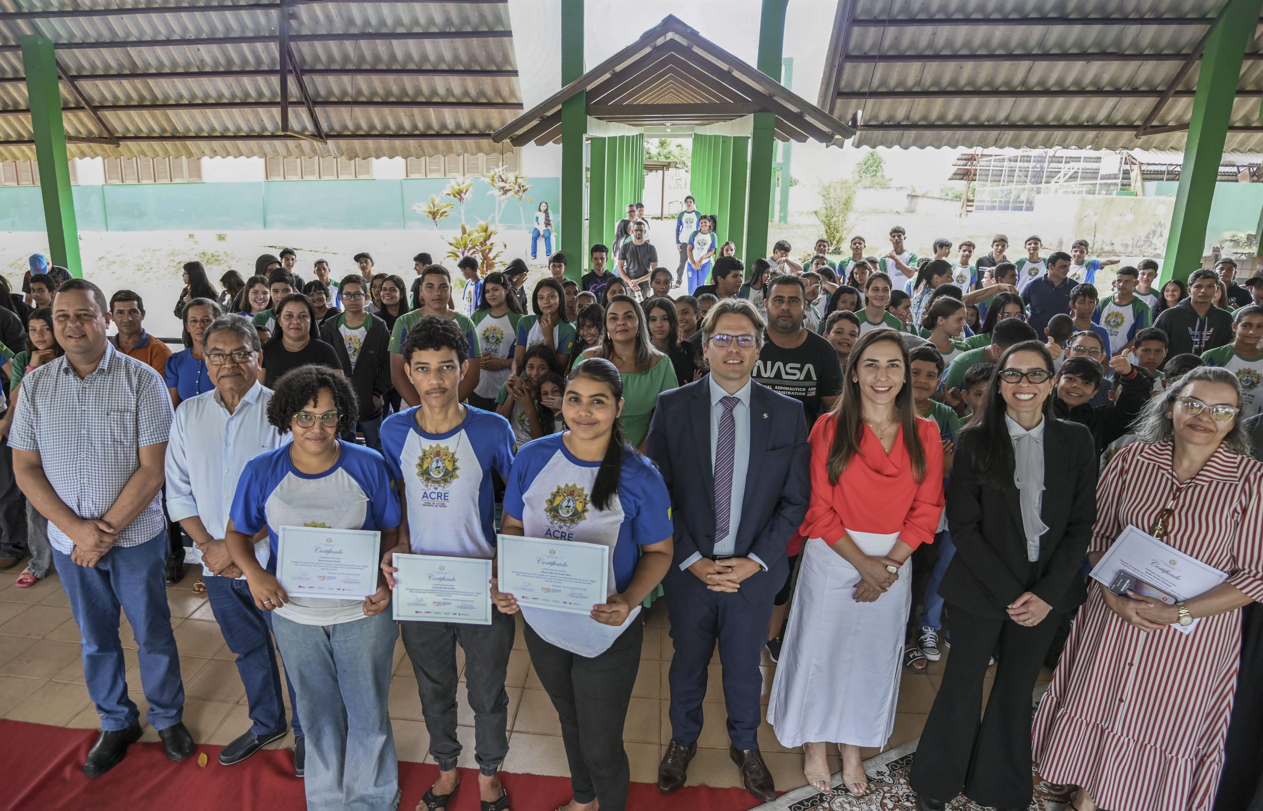 Participaram da solenidade ainda o secretário adjunto Educação, Tião Flores; o presidente da Câmara Municipal de Porto Acre, vereador Lenilson Baquer; a gestora da Escola Jader Saraiva Machado, professora Suzi Almeida; a representante do Núcleo de Educação do município, Murceia Santos; além de estudantes e familiares dos estudantes.