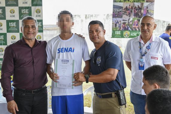 O diretor do Senai, César Dotto, também dedicou palavras motivadoras aos jovens. Em seguida, o presidente do ISE, Mário César, reforçou os investimentos educacionais realizados: “Nós oferecemos em torno de 24 cursos profissionalizantes neste ano e temos adolescentes certificados em todas as unidades acreanas”, destacou.