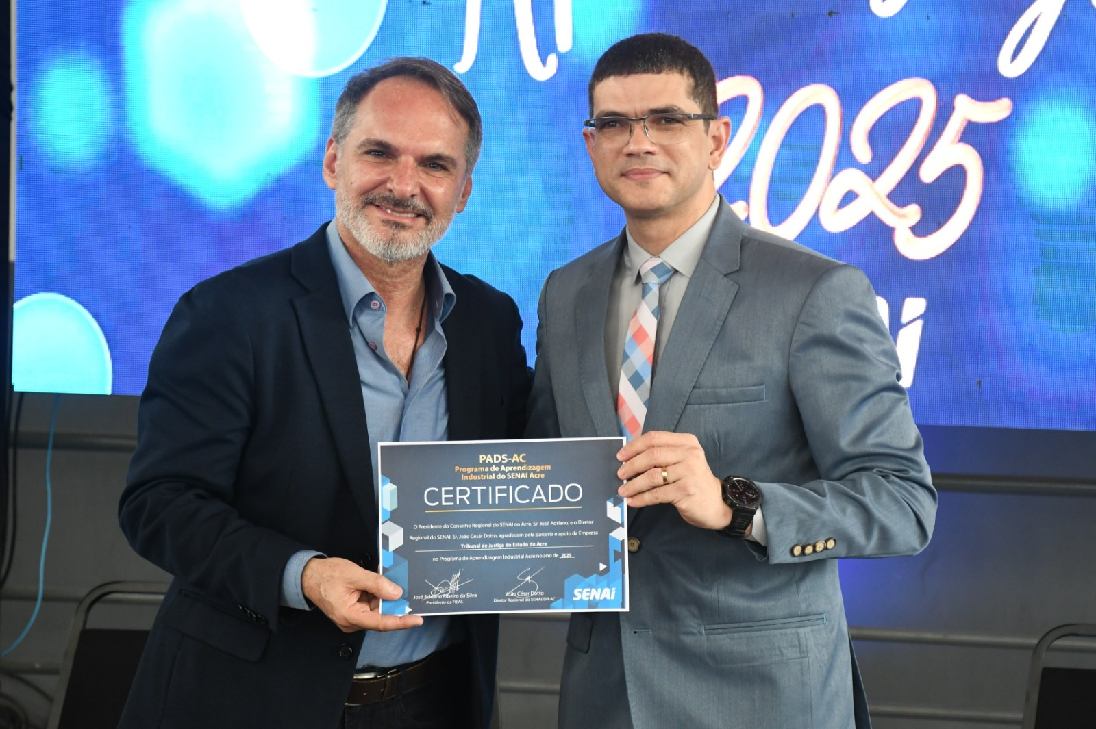Na ocasião, o juiz auxiliar da Vice-Presidência, Bruno Perrota, representou a Coordenadoria da Infância e Juventude do TJAC. “O próximo passo é: coragem. Busquem seu espaço e ostentem com orgulho a formação do Senai. Lembro com muito orgulho do meu avô e da minha avó, que trabalharam no Senai. Eu também comecei com o curso de Agrotécnica, por isso sei a importância dessa formação. Honrem aqueles que trouxeram vocês até aqui. O Poder Judiciário é uma porta de entrada para auxiliar cada um de vocês, porque precisamos construir um mundo melhor hoje, para daqui uns anos possamos ter um mundo melhor para nossas famílias”, afirmou.