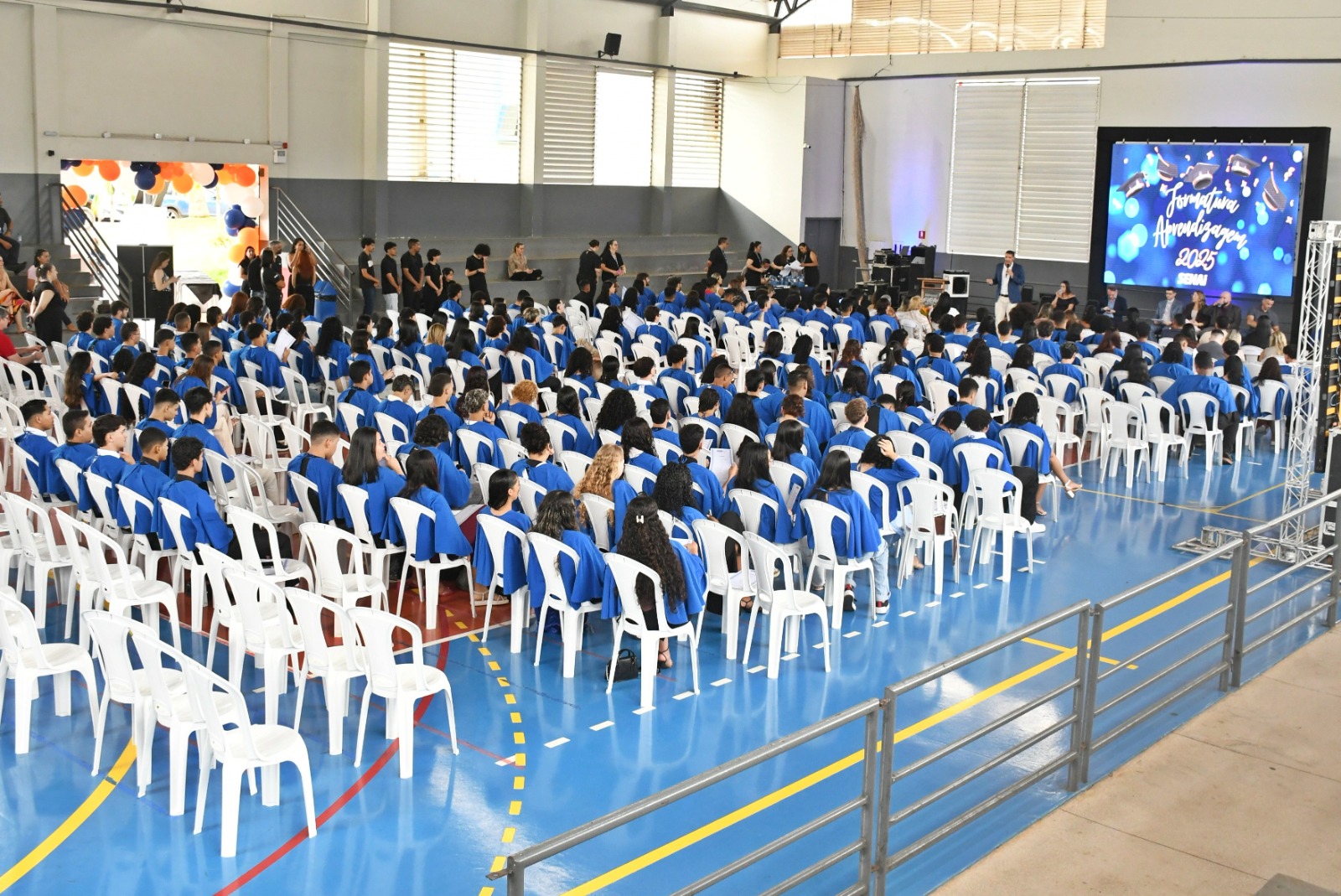 Durante a cerimônia, 266 alunas e alunos receberam o certificado de conclusão dos seguintes cursos de aprendizagem: Eletroeletrônica de Veículos Leves, Eletricista de Manutenção Eletroeletrônica, Gestão Industrial, Operador de Processos, Distribuição e Logística. As capacitações são gratuitas e o público contempla a faixa etária de 14 a 24 anos.