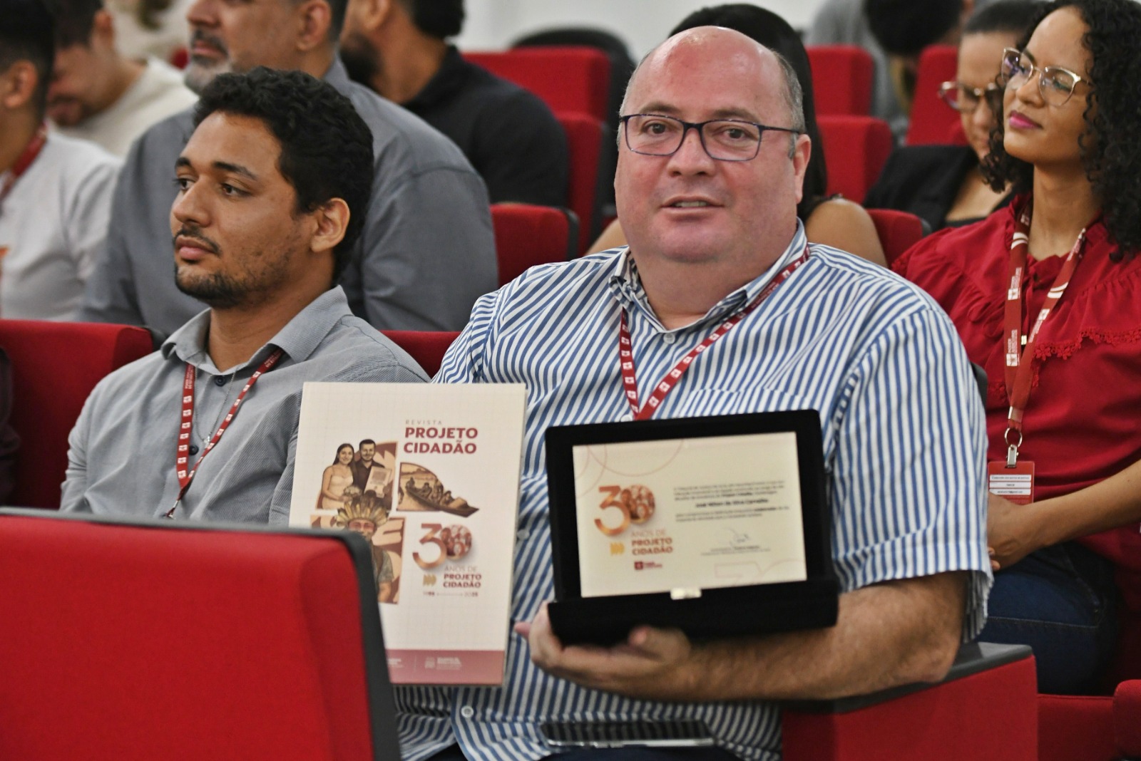 O evento foi concluído com a concessão de homenagens a servidoras, servidores e demais colaboradoras e colaboradores que atuaram em diferentes edições do Projeto Cidadão, responsáveis por contribuir de forma decisiva para a construção e a expansão dessa política pública de cidadania, desenvolvida de maneira contínua e coletiva.