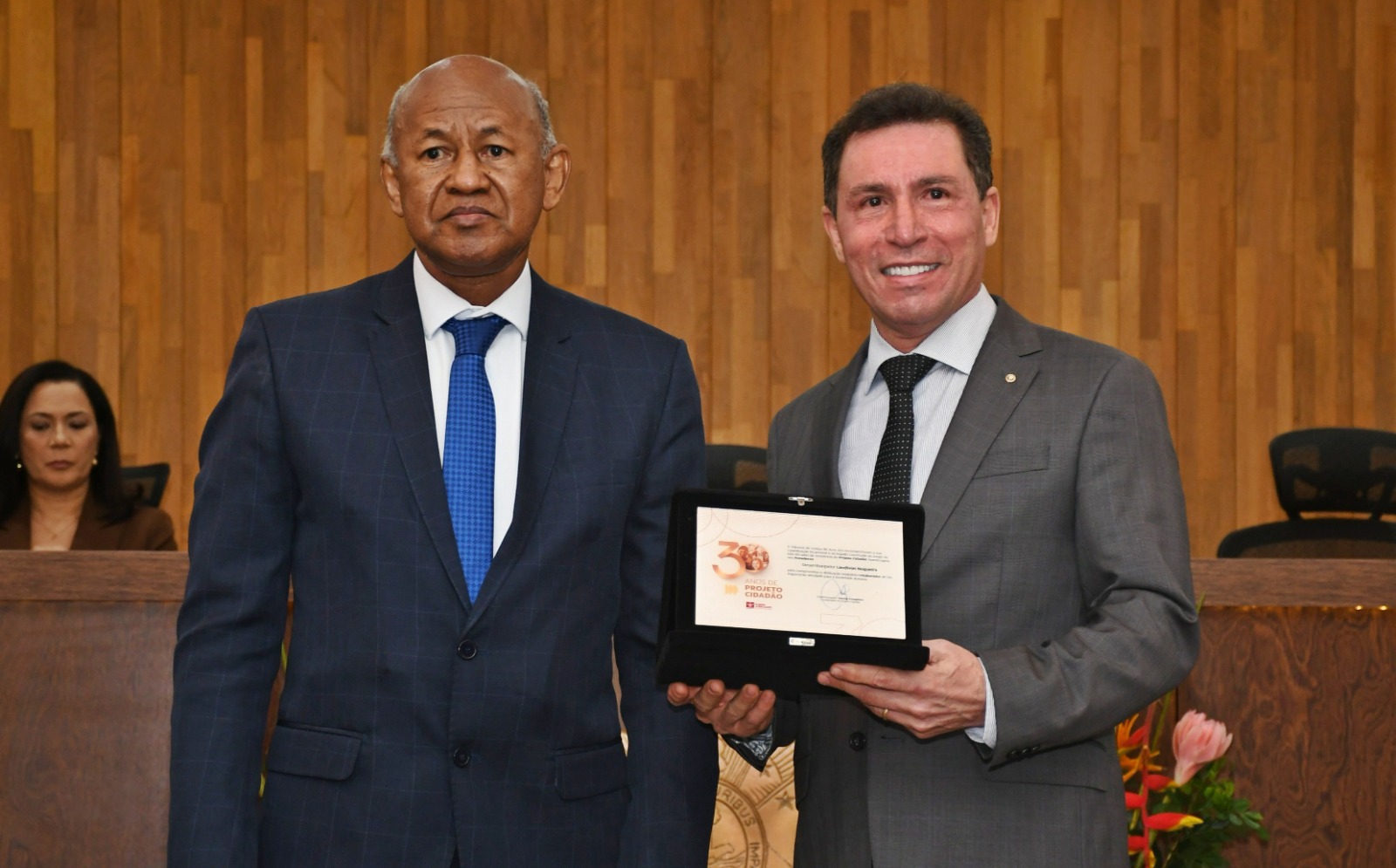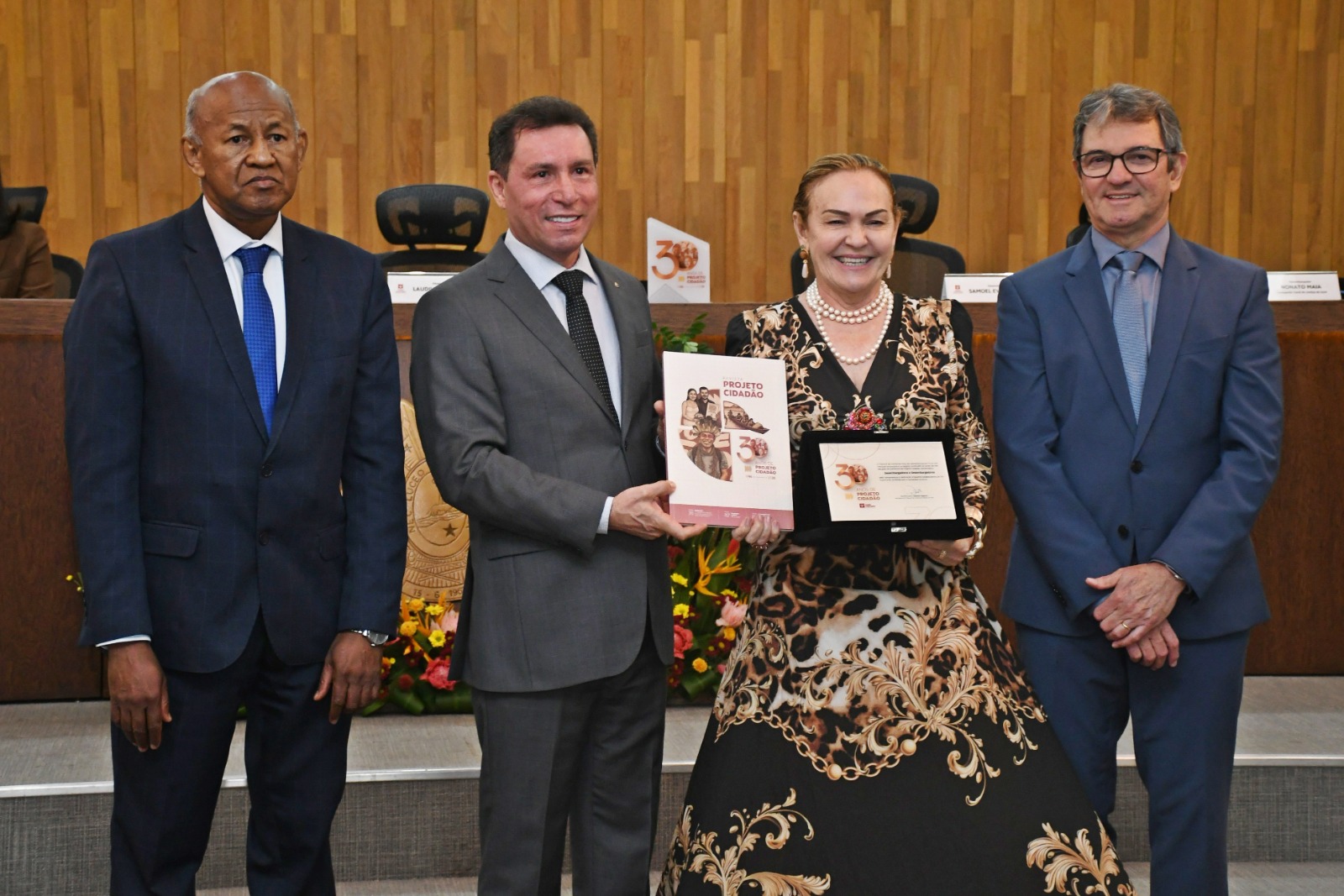 Em comemoração aos 30 anos de atuação do Projeto Cidadão, o Tribunal de Justiça do Acre (TJAC) promoveu uma solenidade de homenagens na tarde desta segunda-feira, 15, no plenário da Corte, em Rio Branco. O evento reuniu magistradas e magistrados, servidoras e servidores, além de autoridades, com destaque para representantes das instituições parceiras da iniciativa social desenvolvida pelo Judiciário acreano.