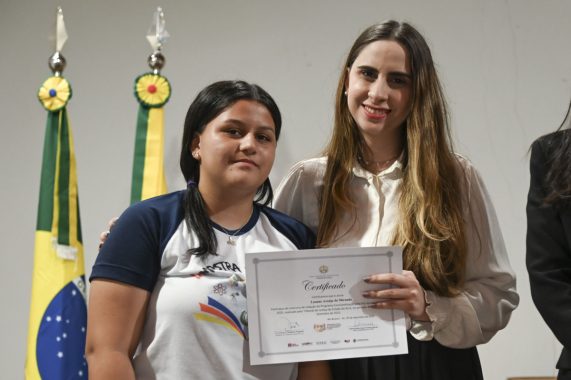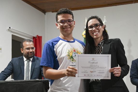Estiveram presentes na solenidade de premiação a defensora Laís Andrade; o representante da Ordem dos Advogados do Brasil – Seccional Acre (OAB/AC), Gabriel Rossi; o gestor da Escola Divina Providência, Raimundo Moreira; a coordenadora de Apoio aos Projetos Sociais (Coaps), Isnailda Silva; a assessora da Cosiv, Amália Costa; além de alunas, alunos e familiares.