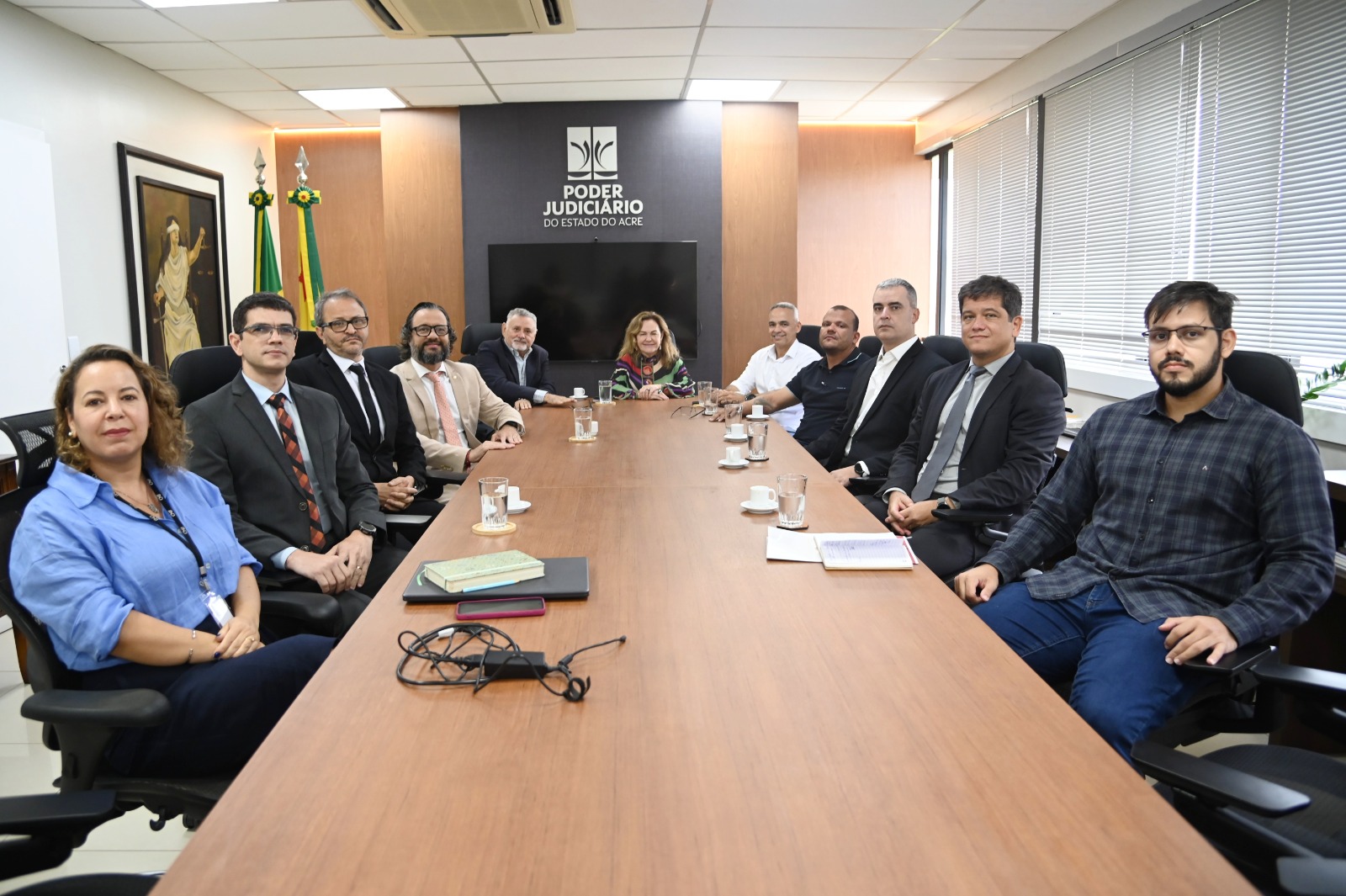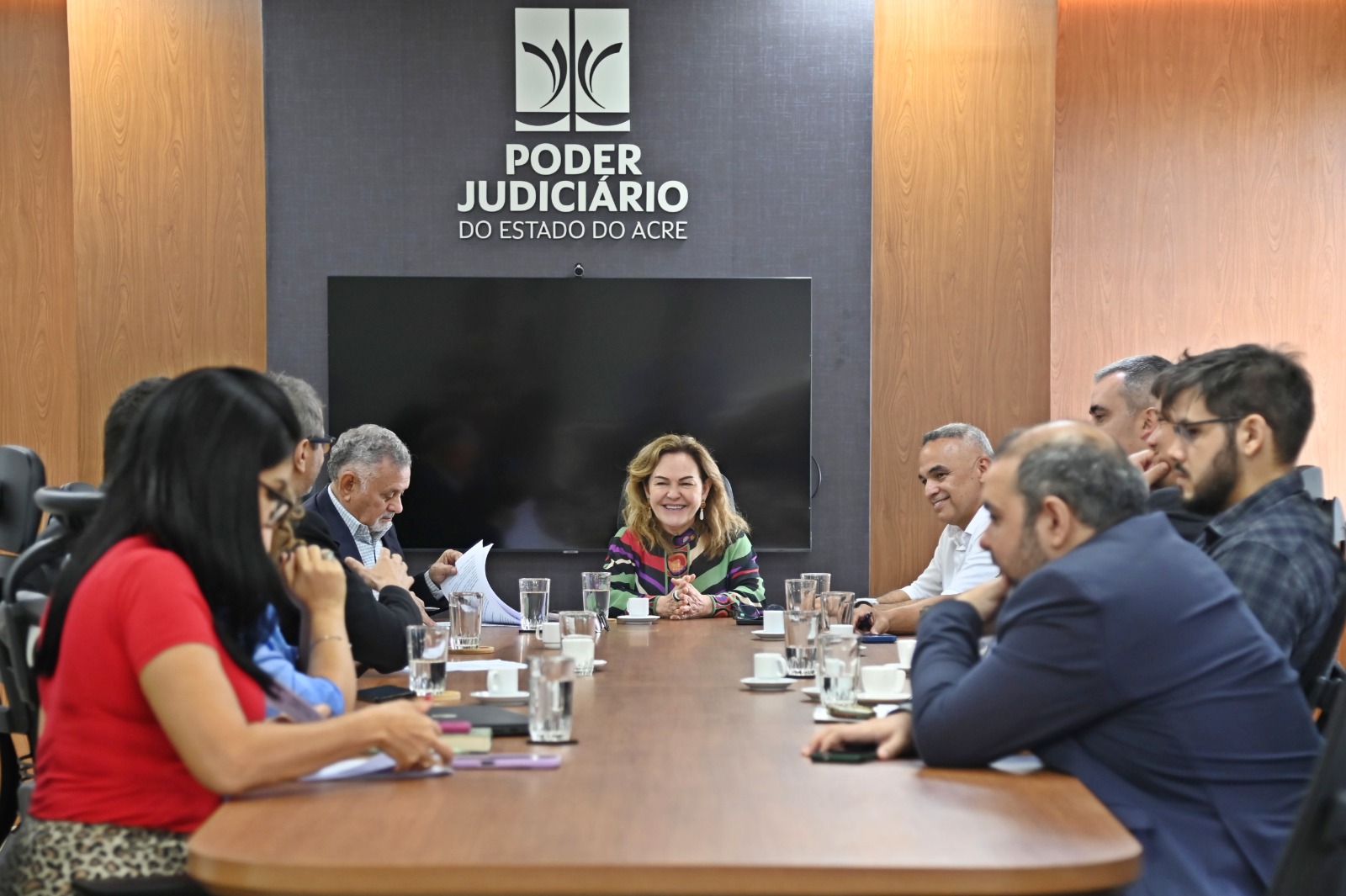 A vice-presidente do TJAC, desembargadora Regina Ferrari, e o supervisor do GMF, desembargador Francisco Djalma, receberam representantes das secretarias de Planejamento e de Administração (Seplan e Sead), do Instituto de Administração Penitenciária do Acre (Iapen-AC), além de integrantes da Defensoria Pública do Estado e do Ministério Público do Acre (MPAC).