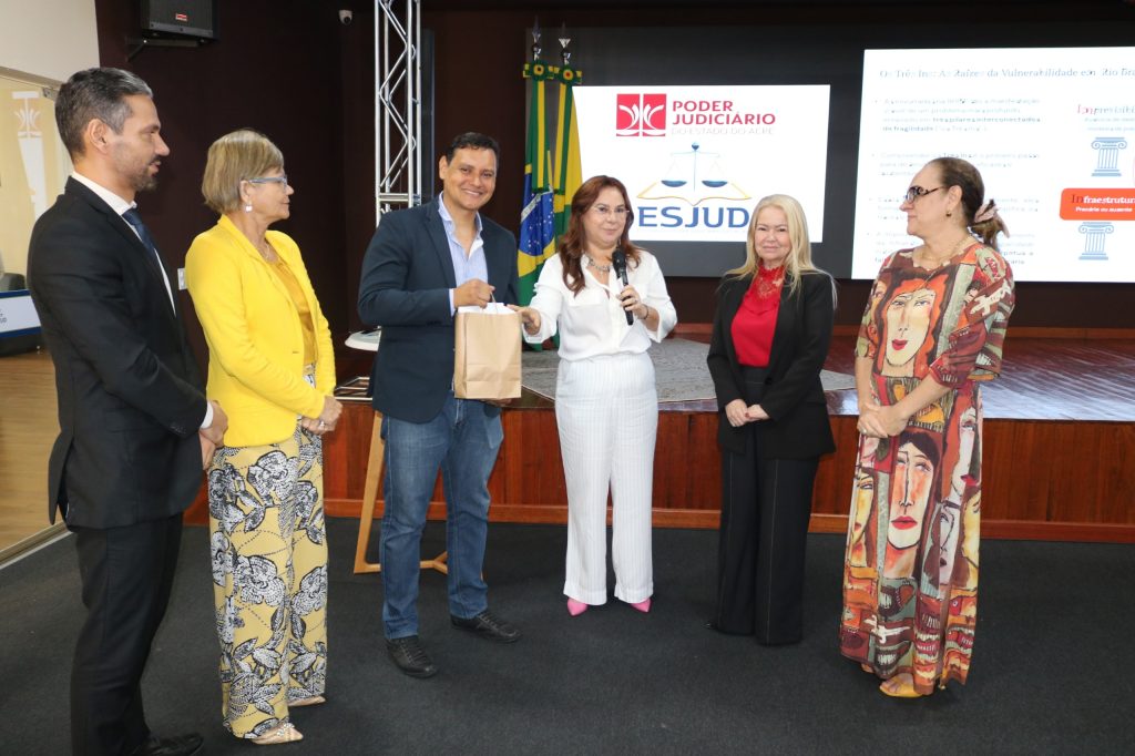 À atividade estiveram presentes o desembargador Luís Camolez, diretor da Esjud, o desembargador Nonato Maia, corregedor-geral da Justiça, e a desembargadora Waldirene Cordeiro, coordenadora do Núcleo Socioambiental Permanente (Nusap) do TJAC. Também o juiz Gilberto Matos, que integra o Comitê de Sustentabilidade Estadual, a juíza Zenice Mota, auxiliar da Presidência do Tribunal, e a secretária do Nusap, Val Amorim.