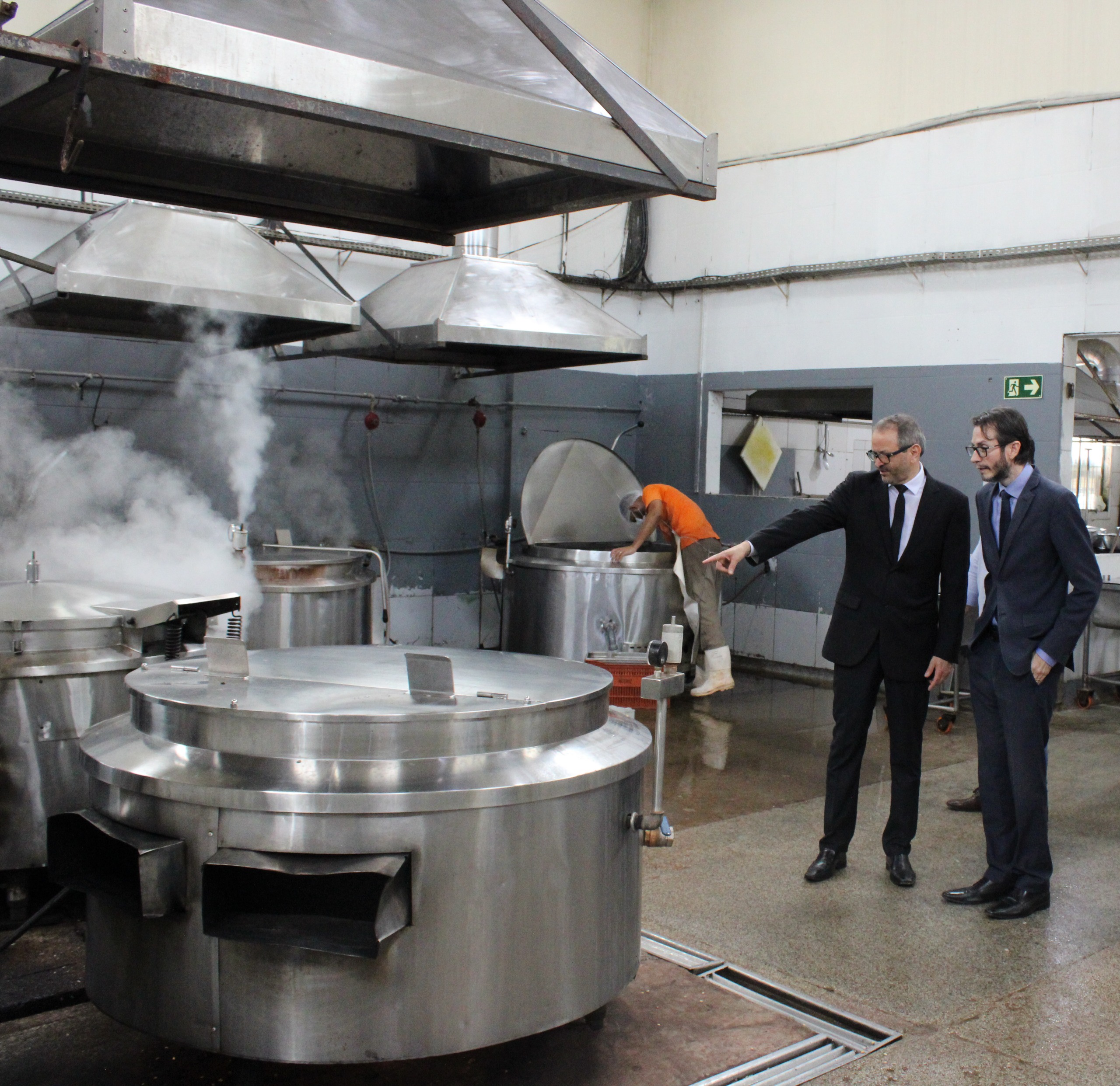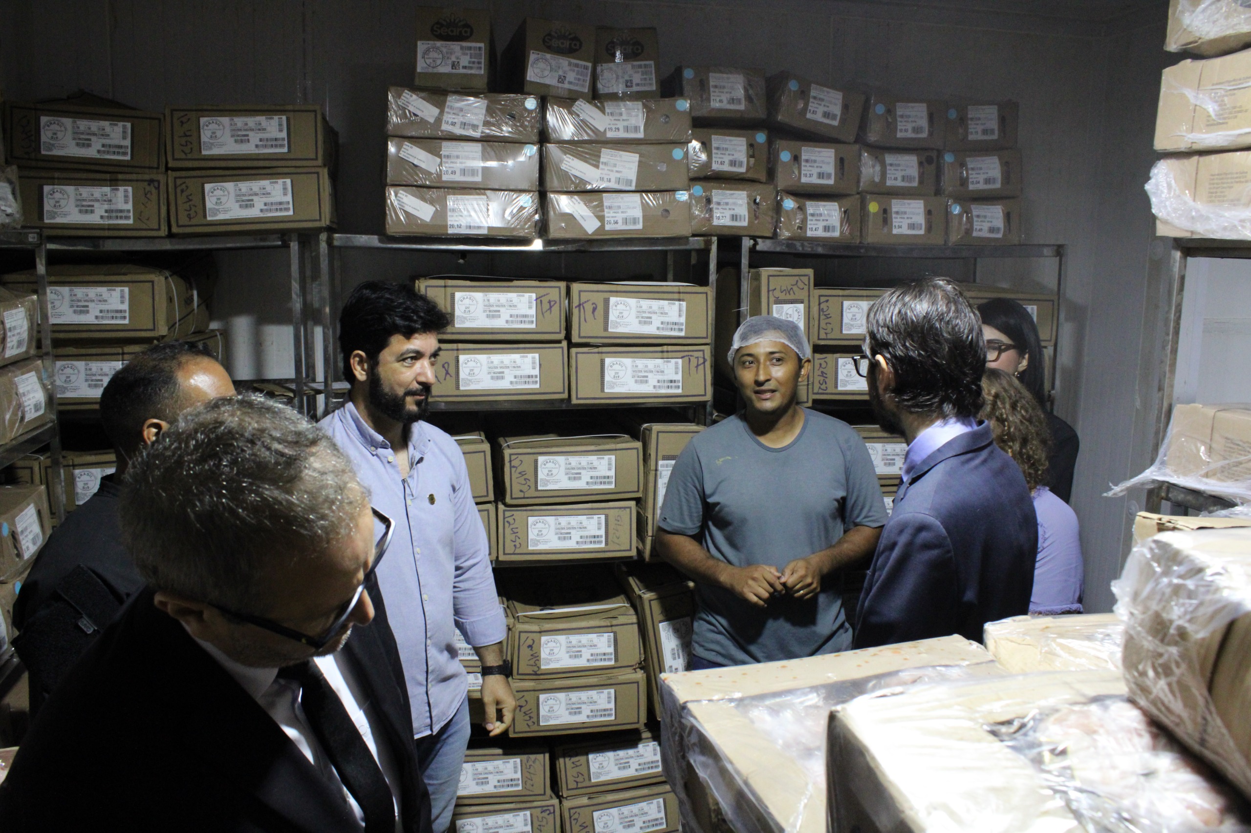 Em seguida, a comitiva verificou as condições da cozinha, câmaras frias, linha de produção e descarte. O gerente da cozinha Mauro Jorge explicou o fluxo de reposição, recebimento dos produtos, bem como os procedimentos de manipulação, limpeza e armazenamento dos itens processados.