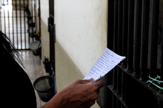 Outra cela estava com vaso entupido há oito dias. Sem conserto, a água putrefada transborda. O que justifica o fato de vários terem falado sobre tuberculose, doenças advindas do cenário imposto e a falta de atendimento médico.