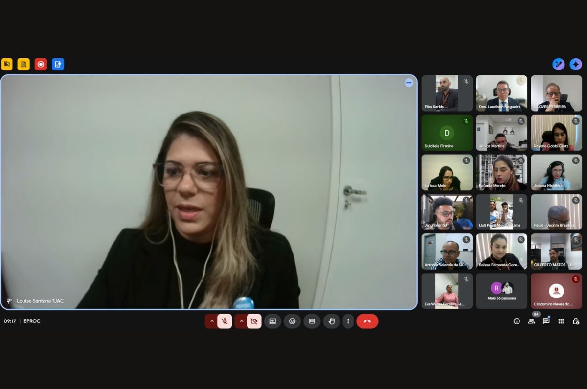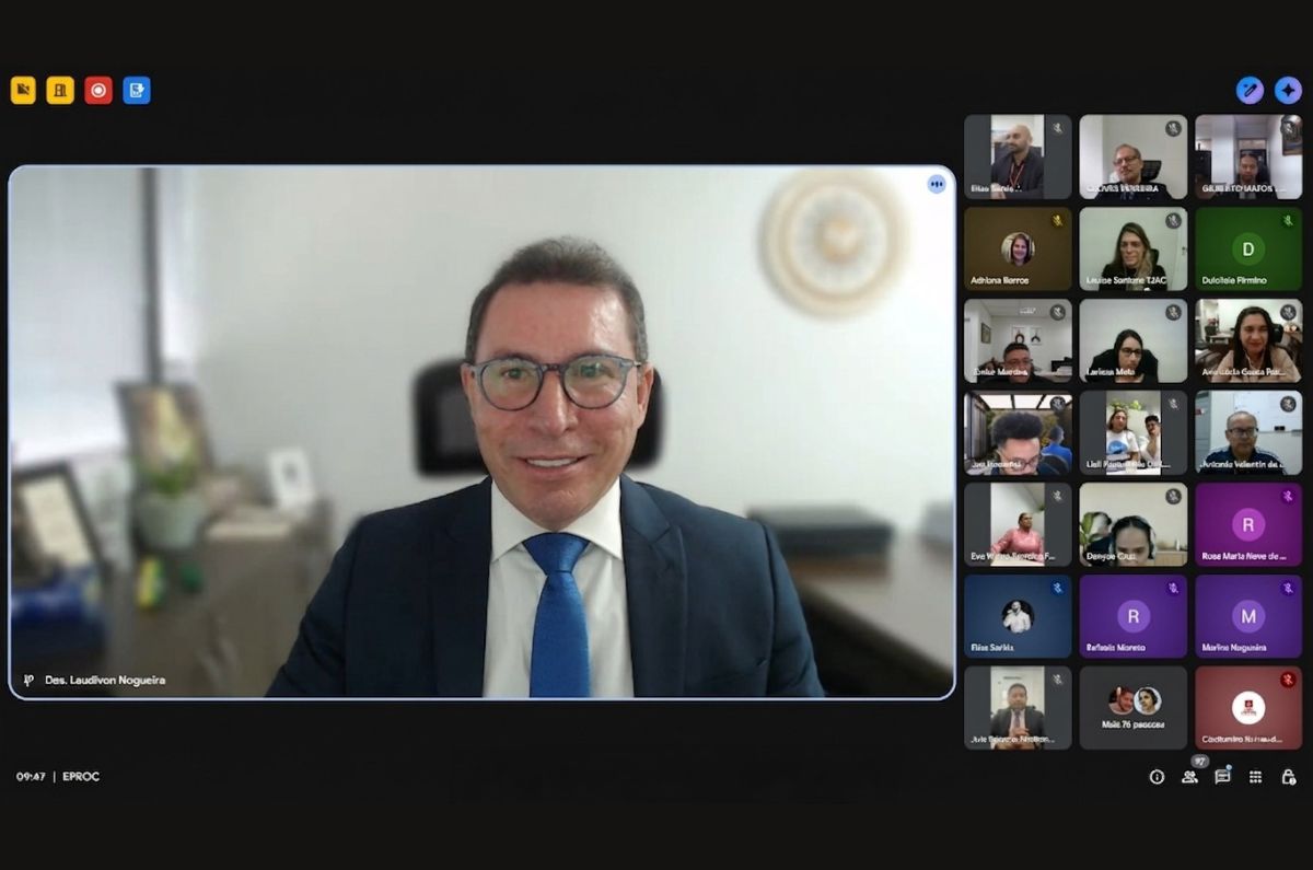 Para marcar a ocasião, foi realizada uma reunião por videoconferência entre o desembargador-presidente do TJAC, Laudivon Nogueira, servidoras e servidores da unidade, com a participação da juíza de Direito Louise Santana (auxiliar da Presidência e coordenadora-geral da implantação do eproc) e dos juízes Cloves Ferreira (auxiliar da Corregedoria-Geral da Justiça do Acre) e Gilberto Matos (titular do Juizado Especial Criminal). Também participaram integrantes da equipe de gestão do eproc e secretários da administração do TJAC.