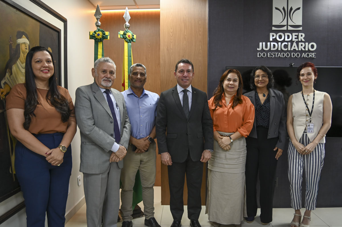 Participaram também da solenidade de assinatura a consultora do programa Fazendo Justiça na área socioeducativa do Acre, Adriana Motter; a chefe do Departamento de Ações Socioeducativas do ISE, Karen Mugraby; e a diretora-geral do TRE/AC, Verônica Costa.