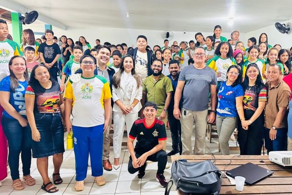 Como parte das ações da campanha nacional Semana Justiça pela Paz em Casa, o Tribunal de Justiça do Estado do Acre (TJAC) participou, nesta quarta-feira, 11, de diálogo com estudantes do ensino fundamental e médio da Escola Estadual Plácido de Castro, no município de Porto Acre, sobre prevenção e enfrentamento à violência doméstica e familiar contra a mulher.