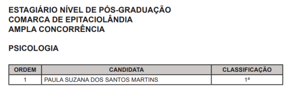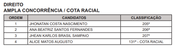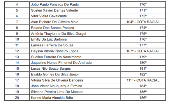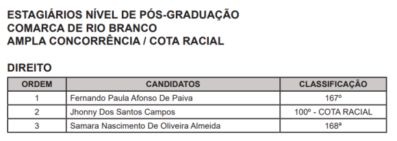 Outra convocação saiu na sexta-feira, 10. Foi chamado um estudante de graduação do curso de Ciências Contábeis para Rio Branco.