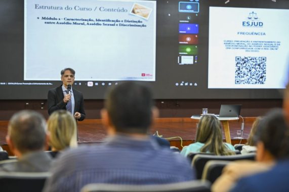 A programação começou na quarta-feira (22) com a palestra “Prevenção e Enfrentamento do Assédio Moral, do Assédio Sexual e da Discriminação no Poder Judiciário”, conduzida por Leandro Soares.