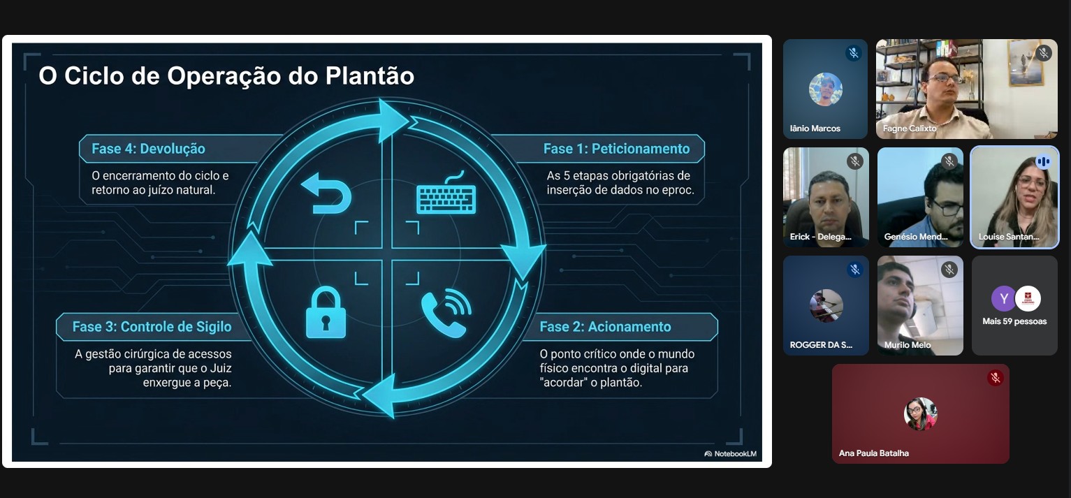 O objetivo da reunião foi demonstrar, na prática, como funcionará o fluxo do plantão judiciário dentro do novo sistema, considerando que, a partir do dia 16 de abril, o SAJ será completamente desativado para novas demandas. Com isso, todos os processos iniciados no âmbito do TJAC passarão a tramitar exclusivamente por meio do eproc.