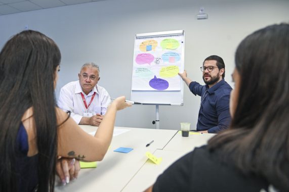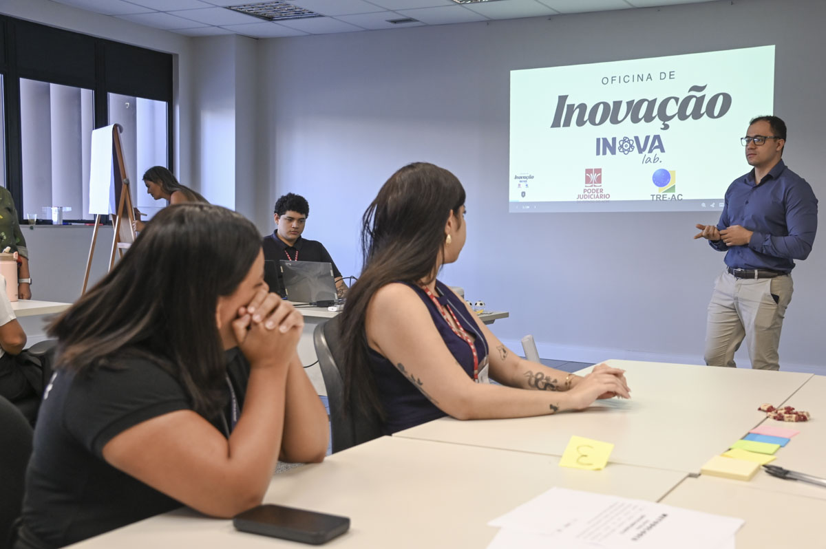 A equipe do Inova Lab ministrou nesta quarta-feira, 15, a oficina de Design Thinking aplicada às temáticas Diligência Sustentável e Viagem que Gera Valor para servidores do Tribunal de Justiça do Acre (TJAC) e do Tribunal Regional Eleitoral (TRE/AC).
