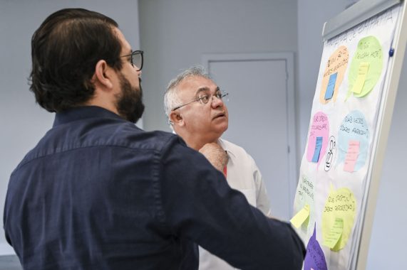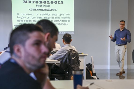 A metodologia seguinte aprofundou a compreensão sobre os temas propostos com a definição do problema. A experiência, o fluxo, as ferramentas, a rotatividade da equipe e até a cultura organizacional entraram na pauta. Mais do que isso, o oficial de justiça James Cley Borges trouxe ainda problemáticas da sociedade que afetam o desempenho das diligências, como a atuação de organizações criminosas nos bairros ou a dificuldade de autocomposição em conciliações pelo medo da população de cair em golpes. Já Helton Macêdo, da 1ª Zona Eleitoral, explicou sobre a dificuldade das intimações em municípios.