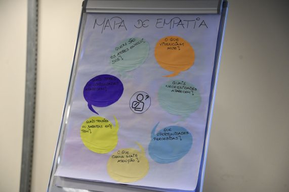 O condutor da atividade foi o assessor de Transformação e Inovação do TJAC, Bono Maia, que propôs a utilização de três metodologias para refletir sobre dois desafios eleitos pela Administração. Dessa forma, a primeira tarefa foi o desenho do Mapa de Empatia, o qual possuía as seguintes questões orientadoras: Quem são os atores envolvidos? O que vivenciam hoje? Quais necessidades aparecem? Quais dores ou dificuldades aparecem? Quais tensões ou barreiras existem? Quais oportunidades são percebidas? O que chama mais atenção?
