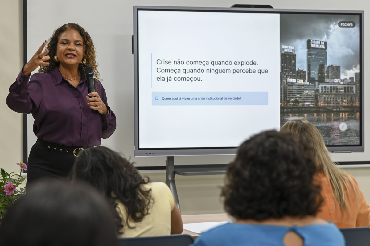 Ao longo da formação, os participantes também foram convidados a analisar, em grupo, casos reais de crises institucionais, em uma dinâmica que favoreceu a troca de experiências, o pensamento estratégico e a construção coletiva de soluções aplicáveis à realidade das instituições públicas.