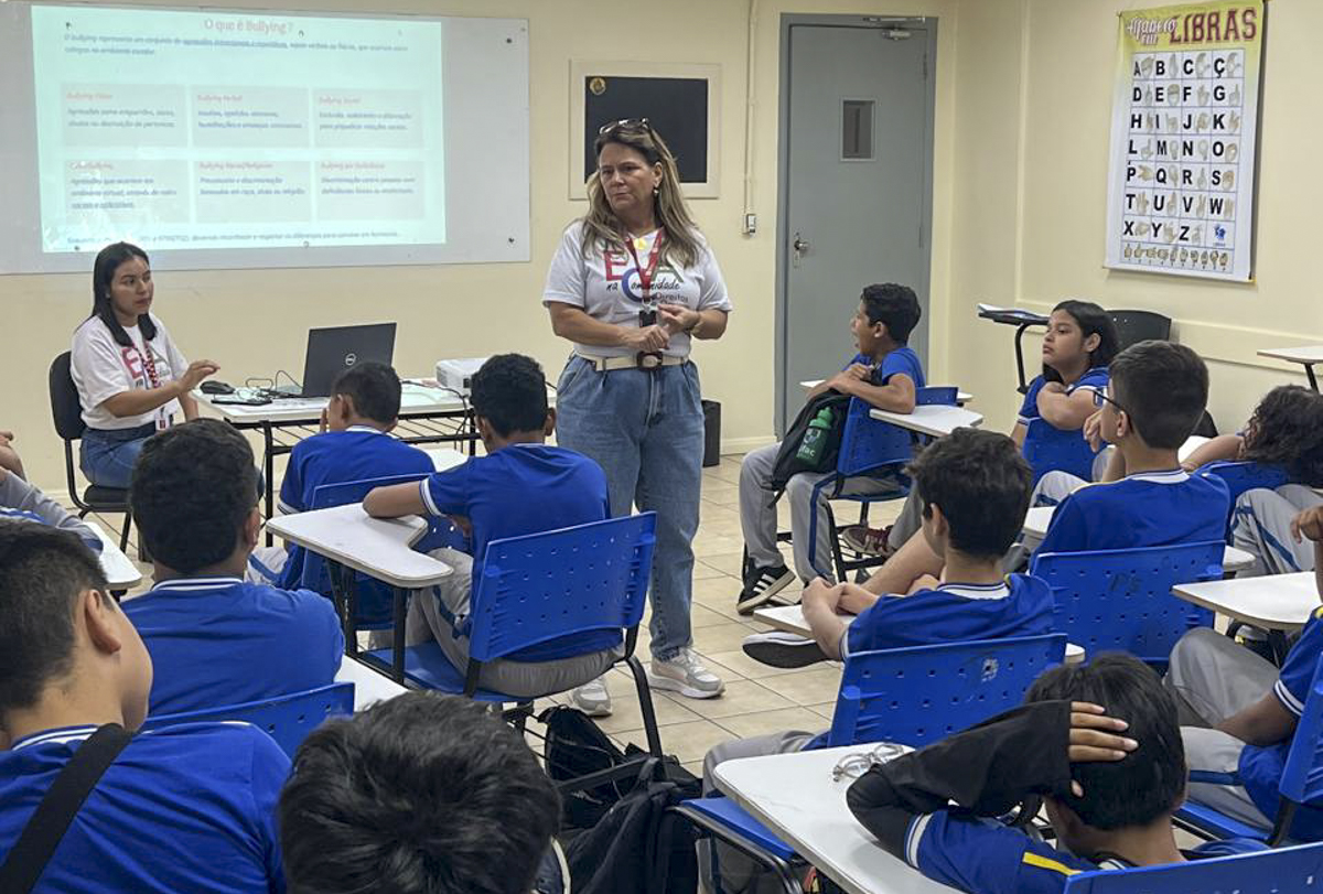 O bullying é um tema tratado de forma transversal nas disciplinas, contudo a palestra reforça conceitos importantes à comunidade escolar